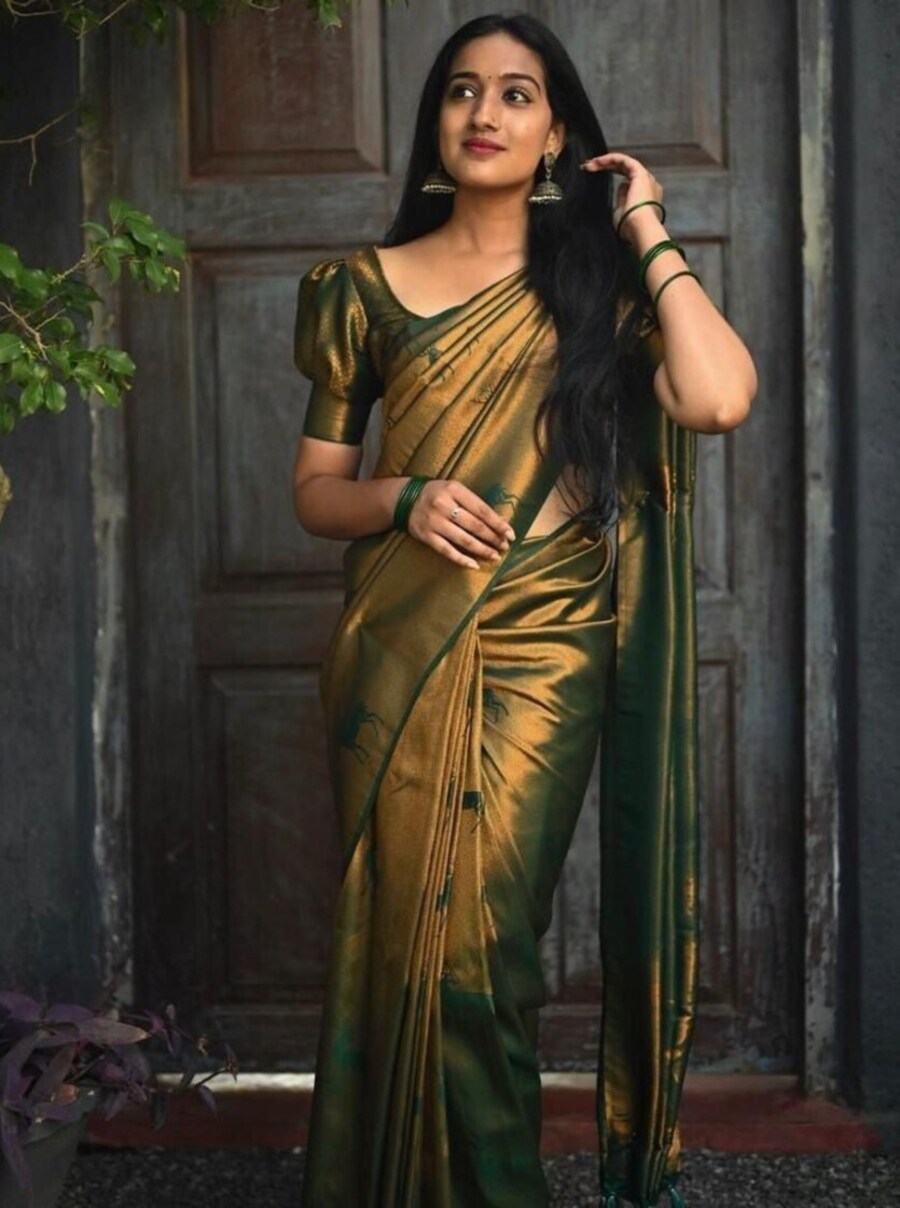 GOLDEN ZARI WEAVING JACQUARD SAREE WITH RICH PALLU AND BEAUTIFUL WEAVING BLOUSE