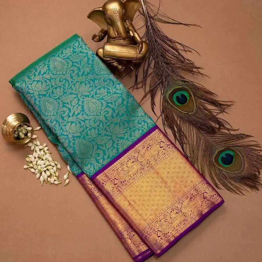 ATTRACTIVE LICHI SILK JACQUARD WORK SAREE WITH UNSTITCHED BLOUSE RAMA