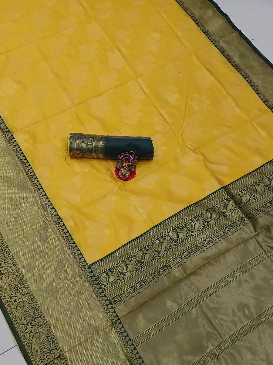 GOLDEN ZARI WEAVING JACQUARD SAREE WITH RICH PALLU AND BEAUTIFUL WEAVING BLOUSE