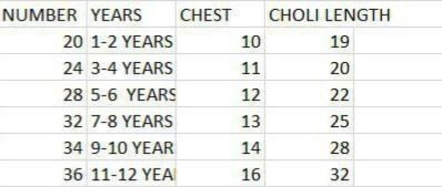 SIZE :- 3 YRS | 4 YRS | 5 YRS | 6 YRS | 7 YRS | 8 YRS | 9 YRS | 10 YRS | 11 YRS | 12 YRS | 13 YRS | 14 YRS | 15 YRS |