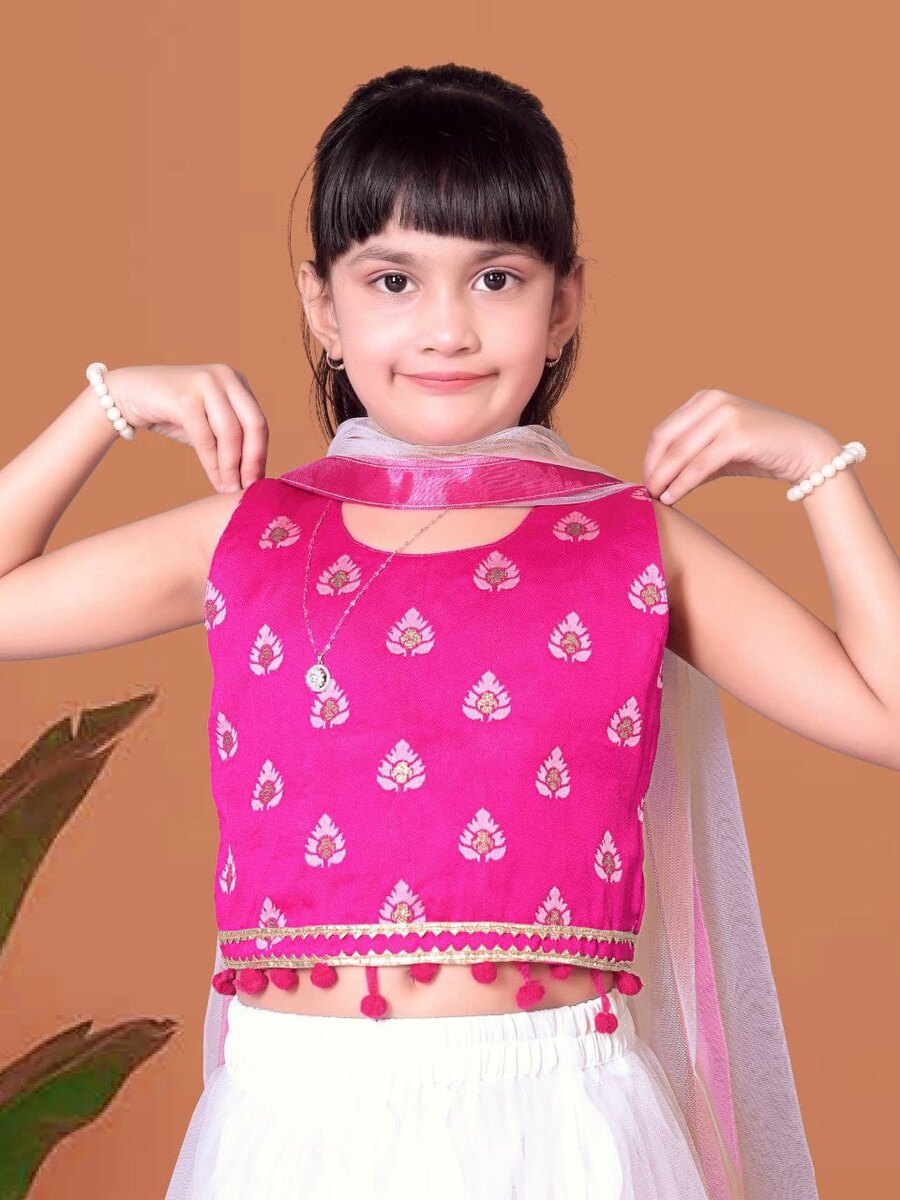 ATTRACTIVE NET JACQUARD EMBROIDERY WORK KID’S LEHENGA CHOLI WITH DUPATTA WHITE