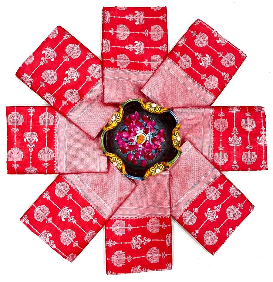 ATTRACTIVE SOFT LICHI SILK JACQUARD WORK SAREE WITH UNSTITCHED BLOUSE RED