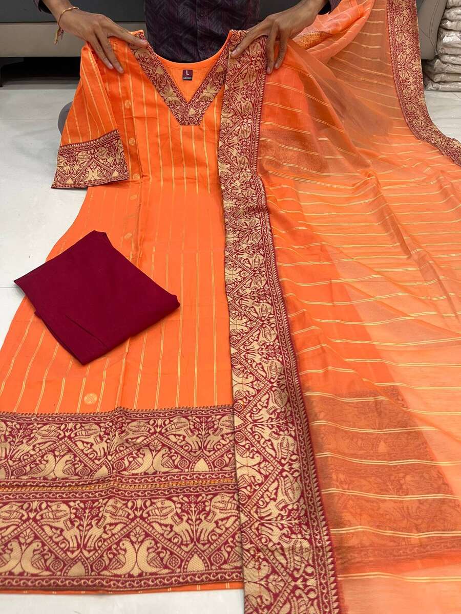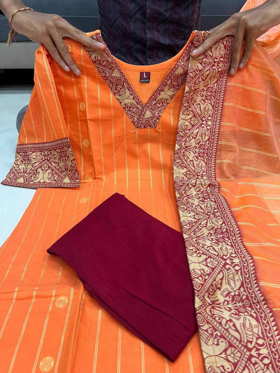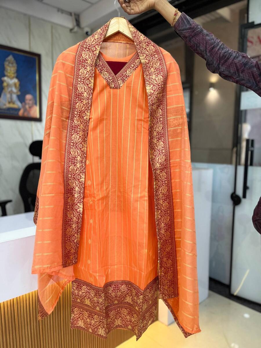 ATTRACTIVE SOUTH COTTON FANCY LACE WORK TOP BOTTOM WITH DUPATTA ORANGE