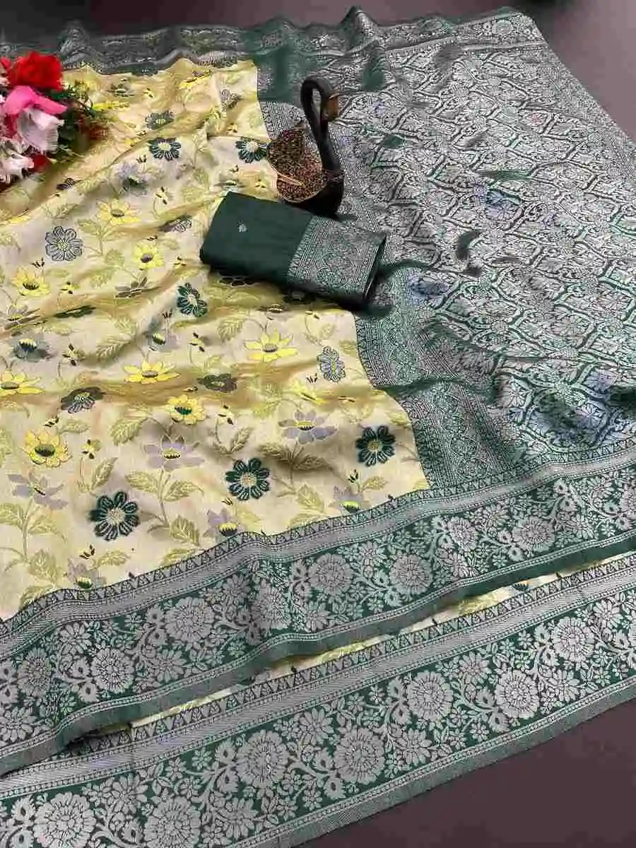 GOLDEN ZARI WEAVING JACQUARD SAREE WITH RICH PALLU AND BEAUTIFUL WEAVING BLOUSE