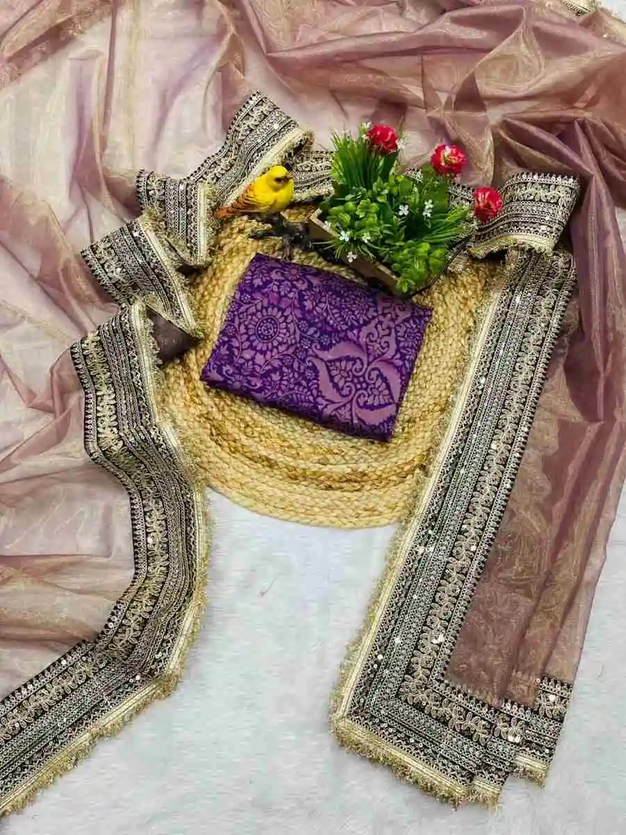 ATTRACTIVE TWILL NET SEQUENCE WITH JARI DORI EMBROIDERY WORK SAREE WITH UNSTITCHED BLOUSE LAVENDER