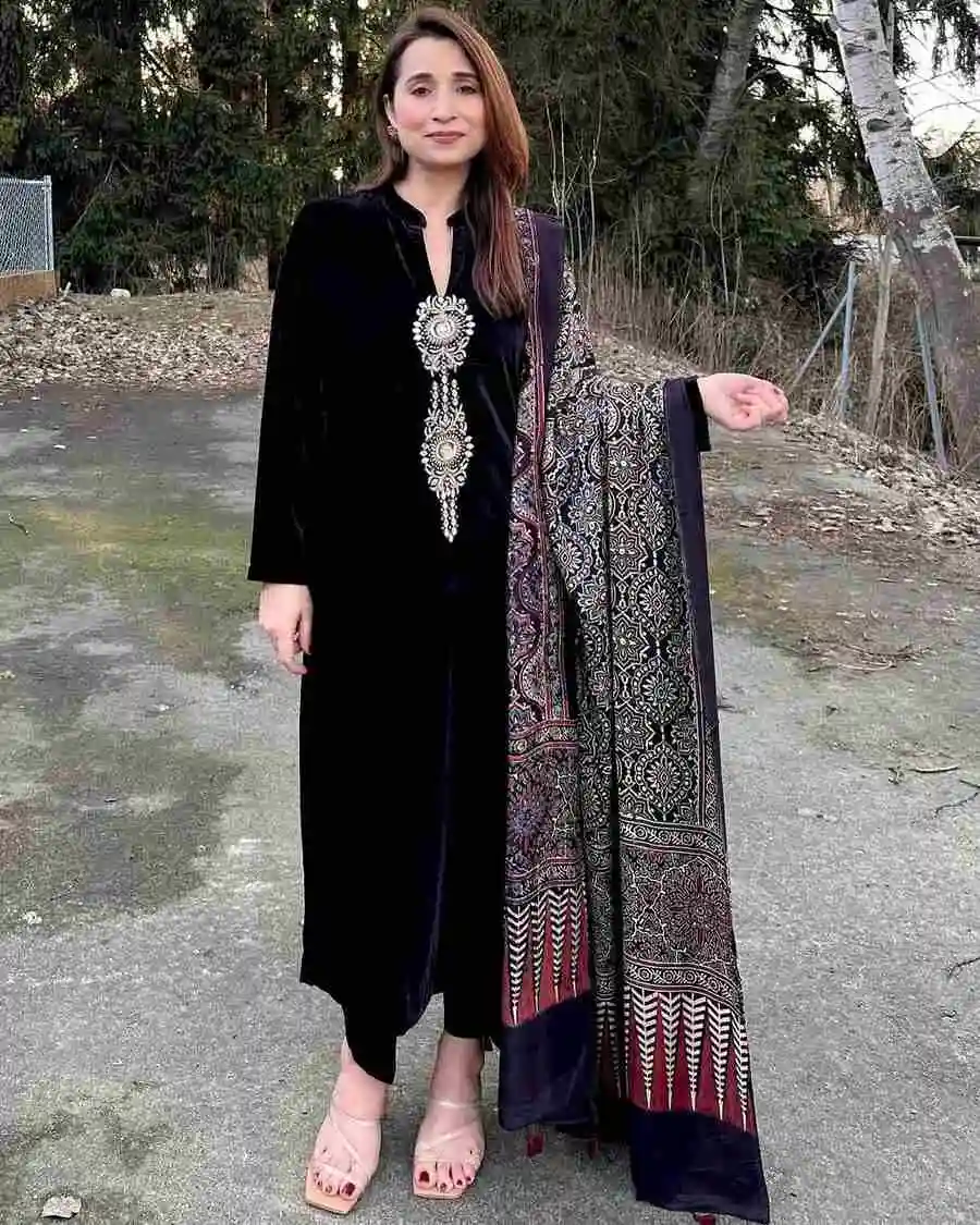 BOTTOM FABRIC :HEAVY PURE VISCOSE VELVET WITH EMBROIDERY WORK
