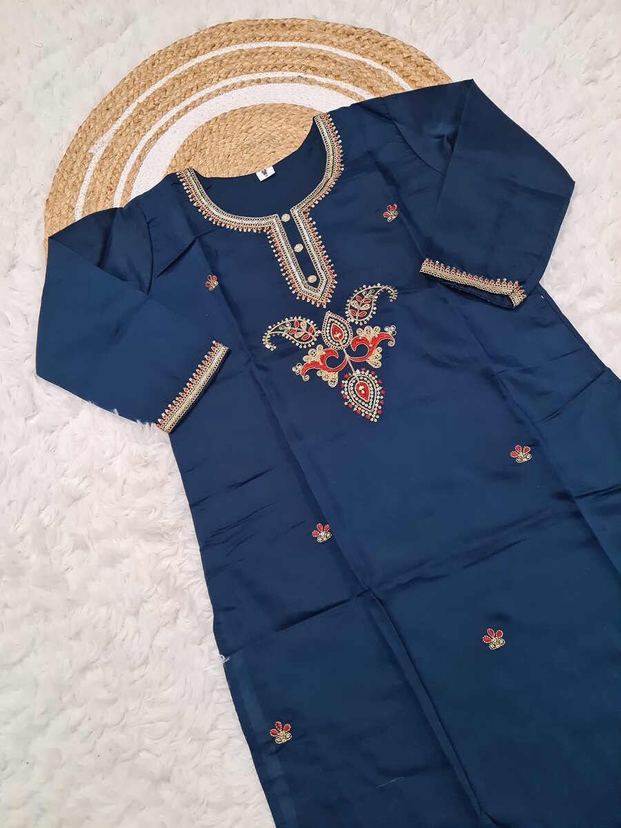 KURTI FABRIC :- 14KG REYON WITH EMBROIDERY DESIGN WORK FULL STITCH NAYRA PATTERN KURTI