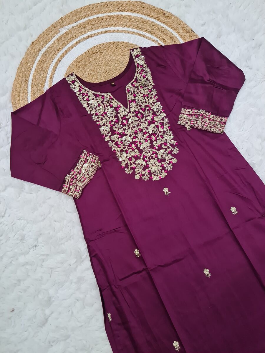 KURTI FABRIC :- 14KG REYON WITH EMBROIDERY DESIGN WORK FULL STITCH NAYRA PATTERN KURTI