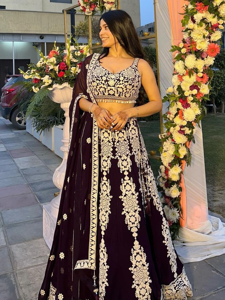 BOLLYWOOD KASTURI SILK THREAD , SEQUENCE & DORI WORK LEHENGA CHOLI WITH DUPATTA BROWN