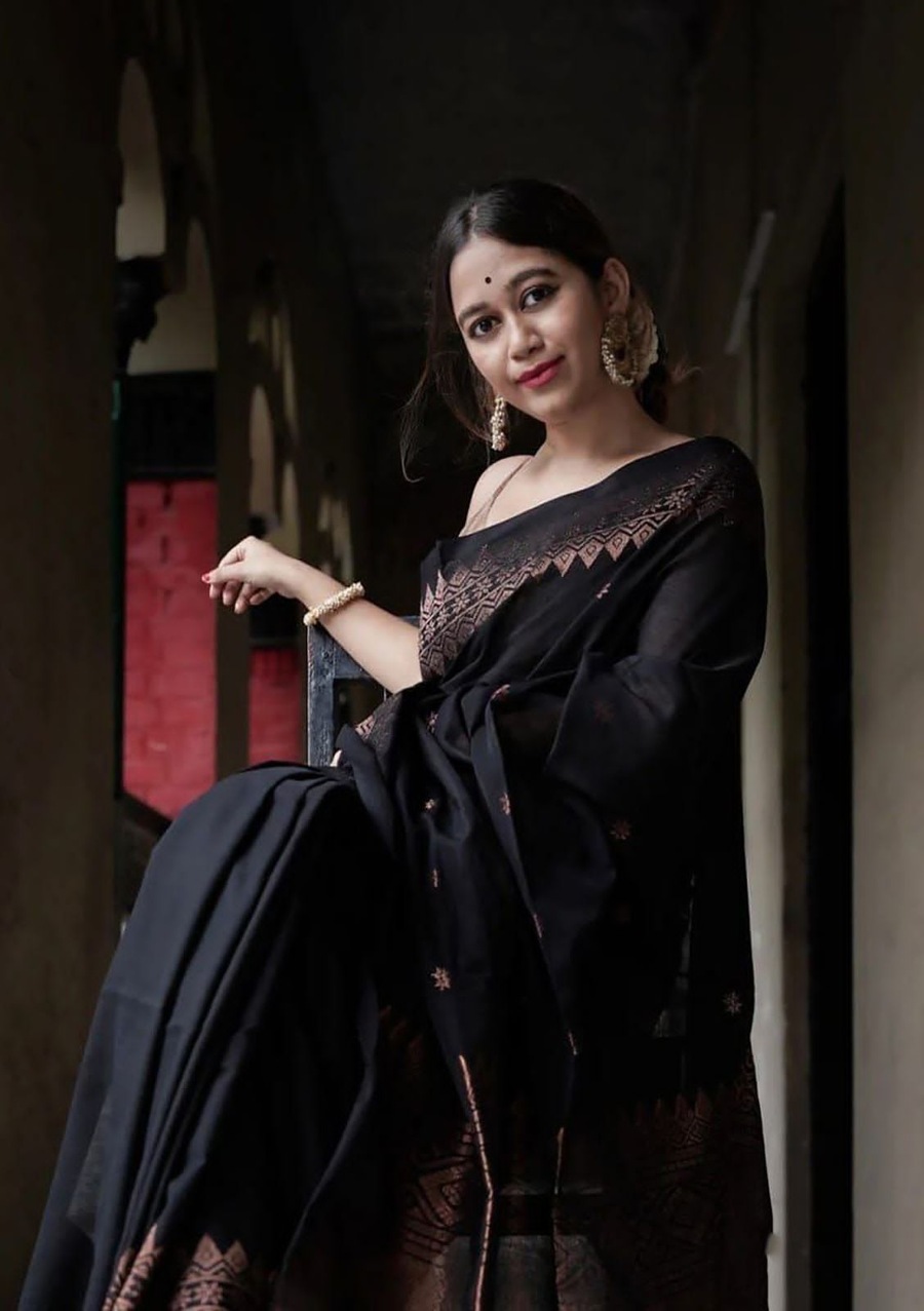 BOLLYWOOD LICHI SILK JACQUARD WORK FESTIVE WEAR SAREE WITH UNSTITCHED BLOUSE BLACK