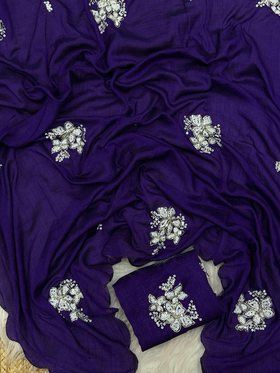 SAREE : PURE ORGANZA SILK FABRIC WITH SEQUENCE EMBROIDERY WITH BEAUTIFUL ARC CUTTING BORDER