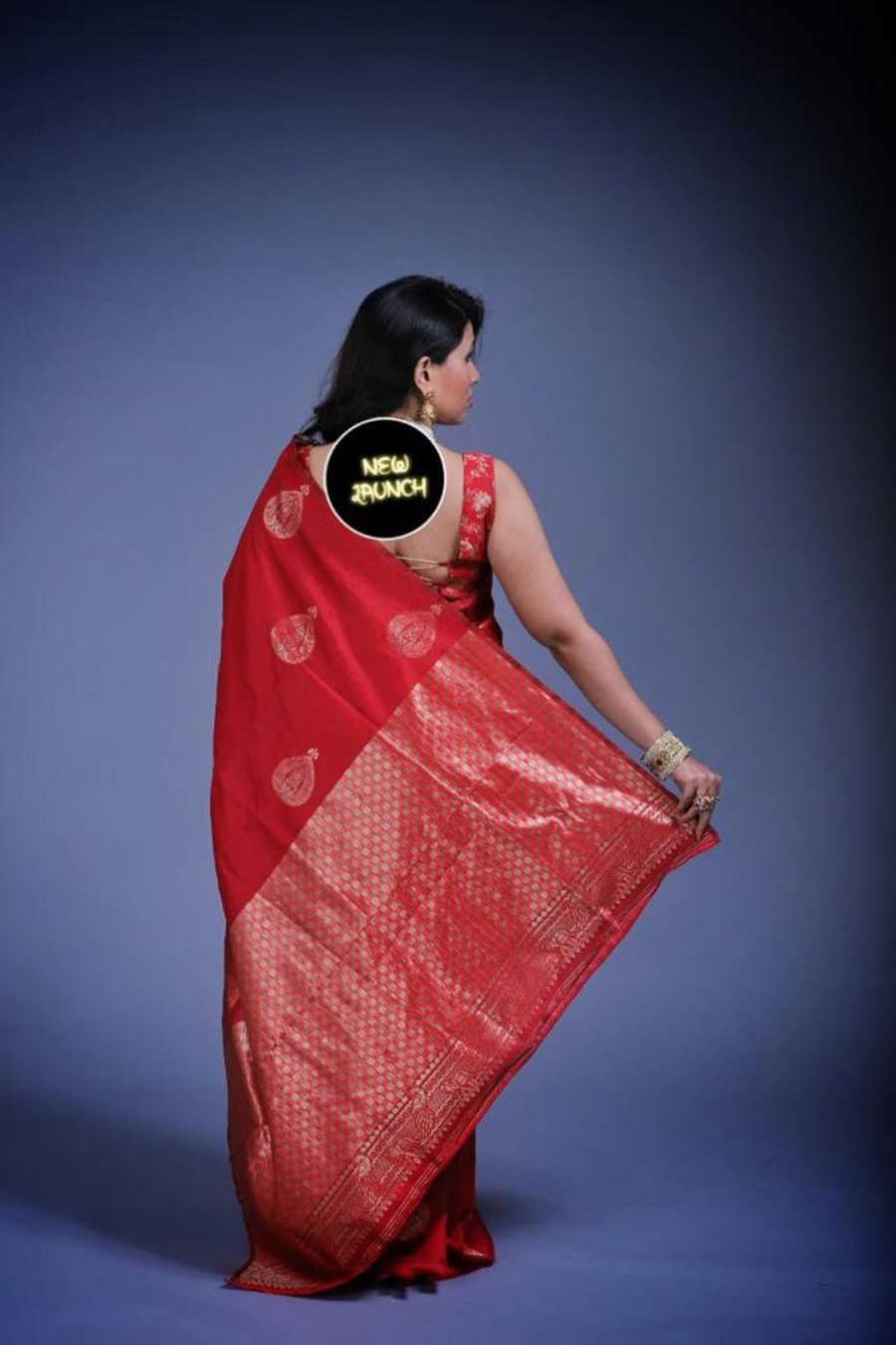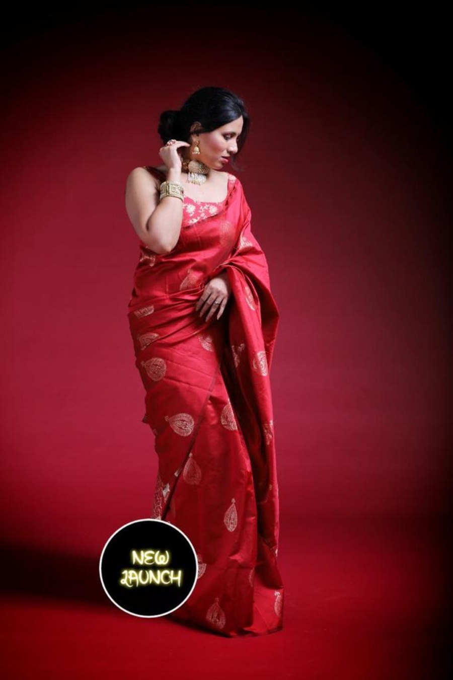DEGINER SOFT LICHI SILK JACQUARD WORK SAREE WITH UNSTITCHED BLOUSE RED