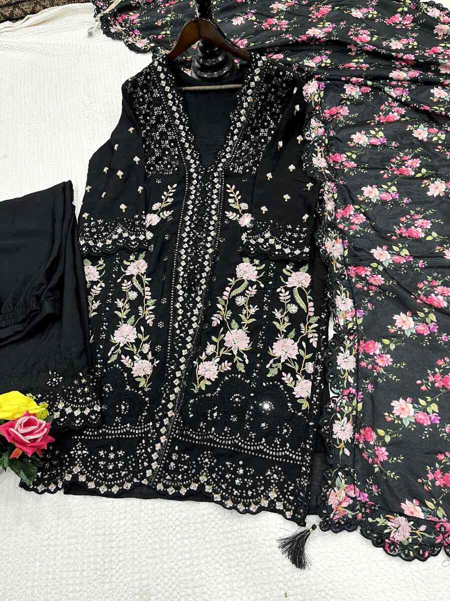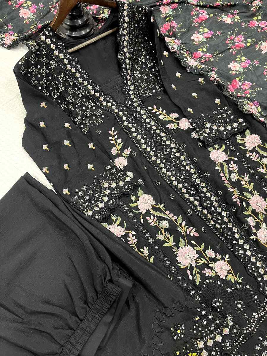 DESIGNER AIRTEX CHINON EMBROIDERY SEQUENCE WORK WITH MIRROR AND DIAMOND WORK TOP PALAZZO WITH DUPATTA BLACK