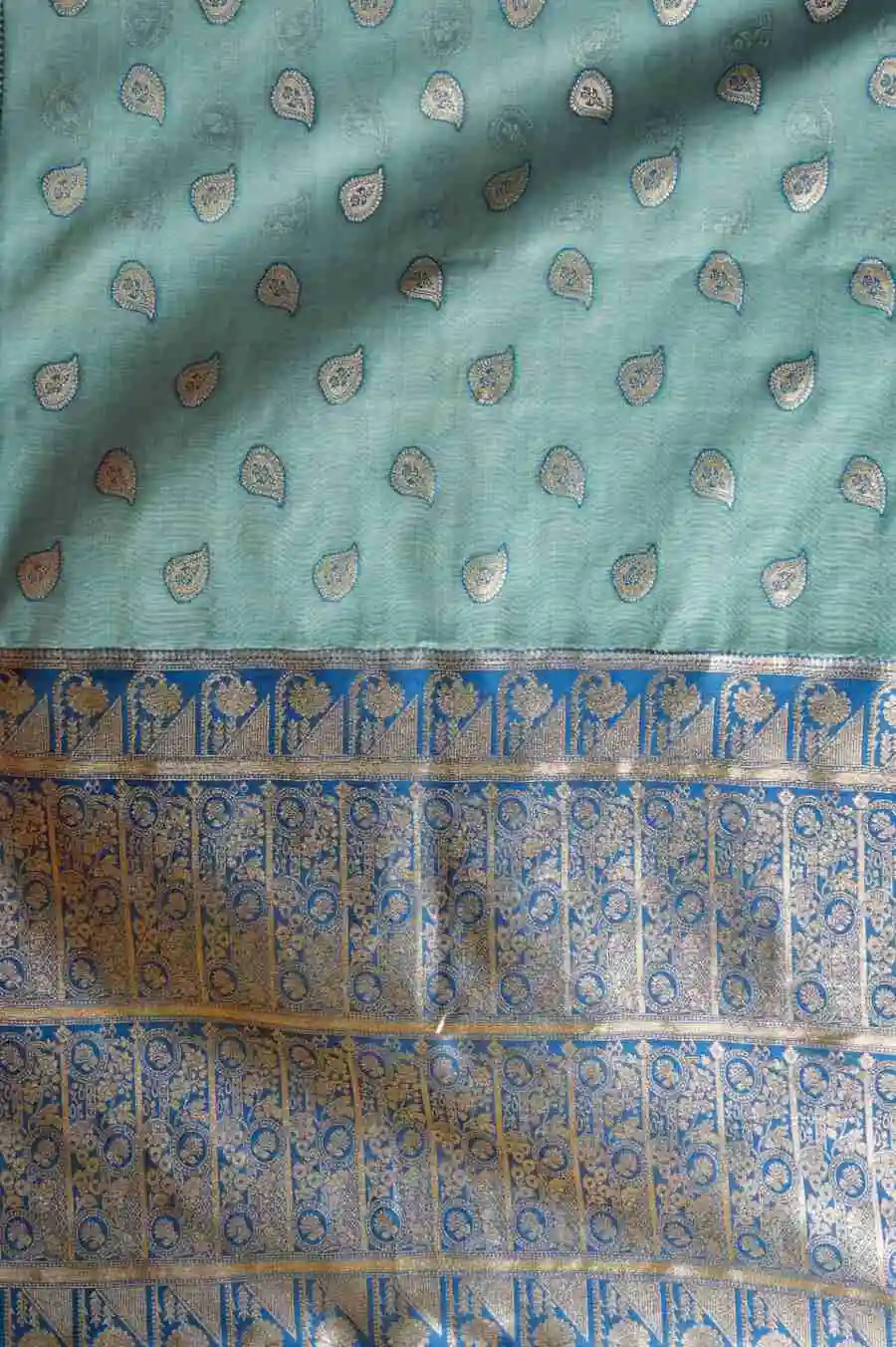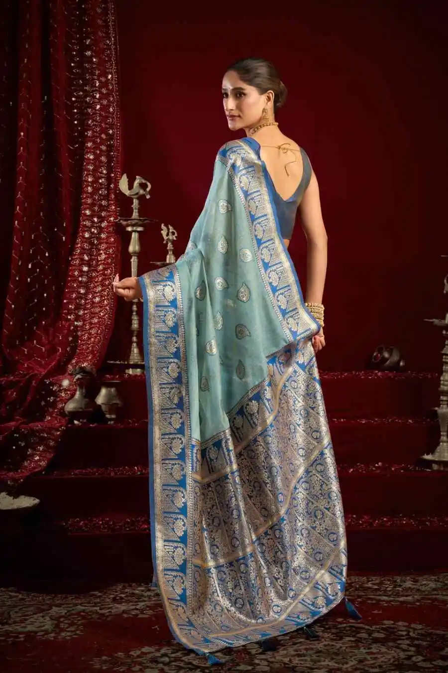 DESIGNER BANARASI JARI WITH ZHALLAR WORK SAREE WITH UNSTITCHED BLOUSE SKY