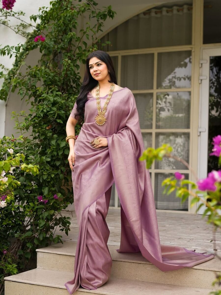 DESIGNER BANARASI SOFT SILK GOLD ZARI WEAVING WORK SAREE WITH UNSTITCHED BLOUSE LAVENDER