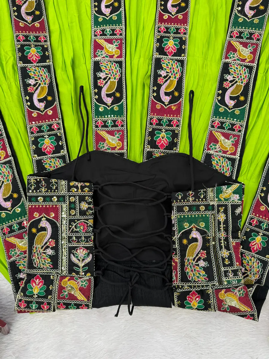 DESIGNER BANGLORI THREAD WITH SEQUNCE WITH CODING DORI WORK TOP WITH LEHENGA PARROT GREEN