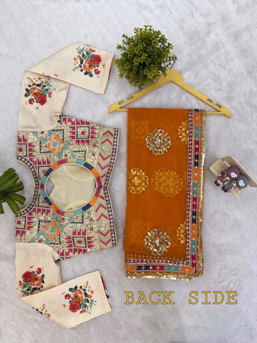 BLOUSE FABRIC LENGTH : GEORGETTE WITH MIRROR WORK 0.80 METER