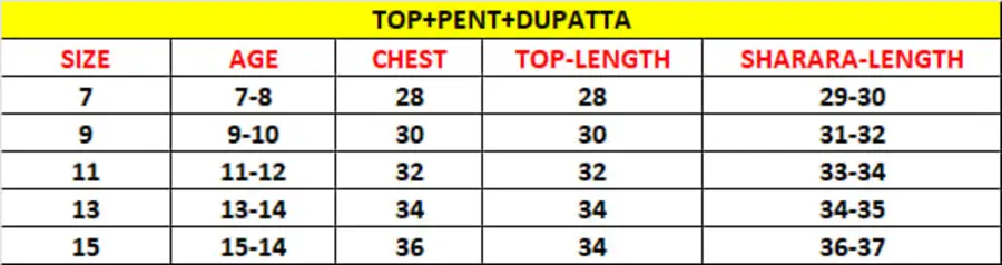 SIZE :- 3 YRS | 4 YRS | 5 YRS | 6 YRS | 7 YRS | 8 YRS | 9 YRS | 10 YRS | 11 YRS | 12 YRS | 13 YRS | 14 YRS | 15 YRS |
