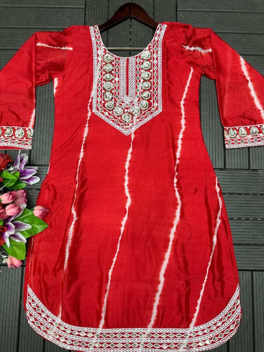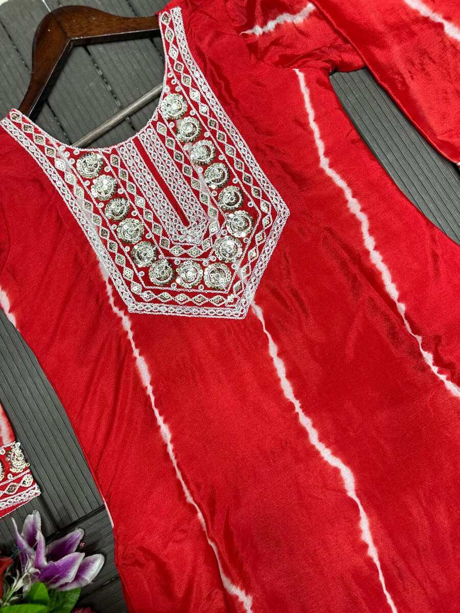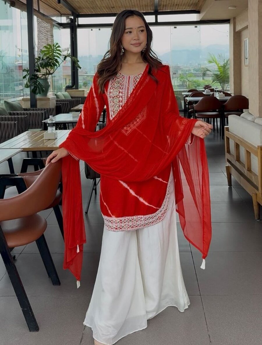 DESIGNER CHINON EMBROIDERY CODING WORK WITH DIGITAL PRINT WORK TOP PALAZZO WITH DUPATTA RED