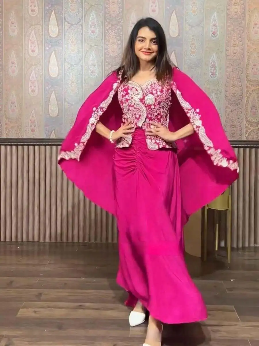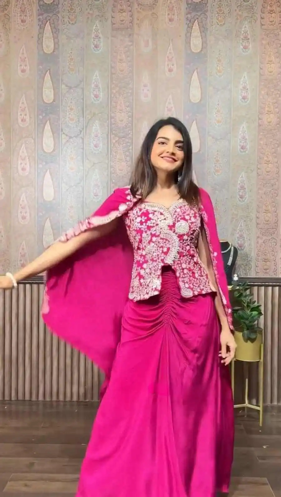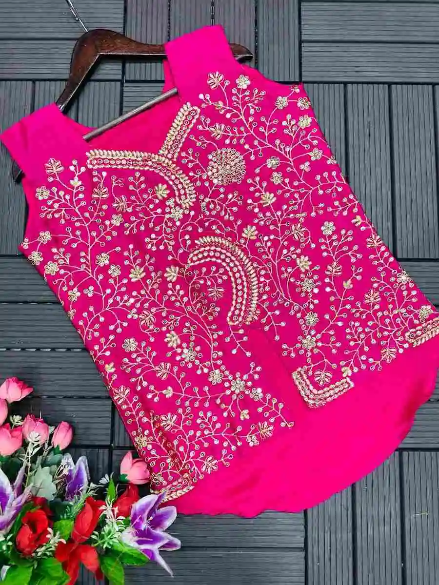 DESIGNER CHINON EMBROIDERY WORK KOTI SKIRT AND DUPATTA PINK