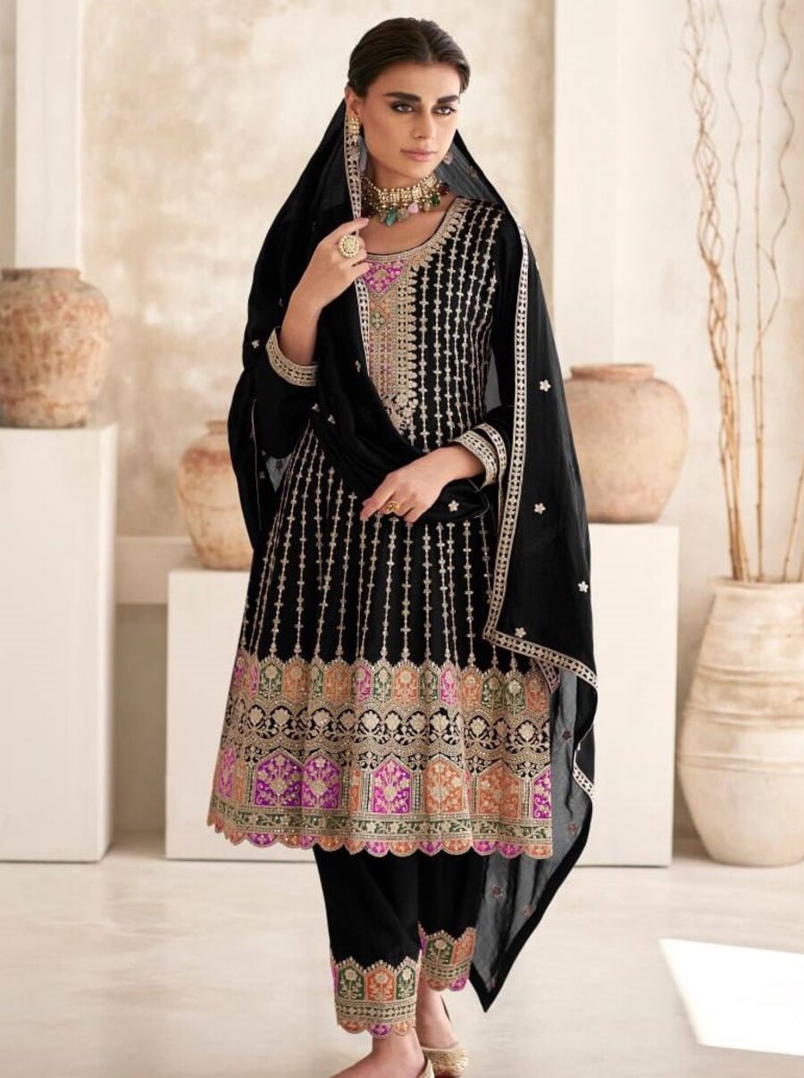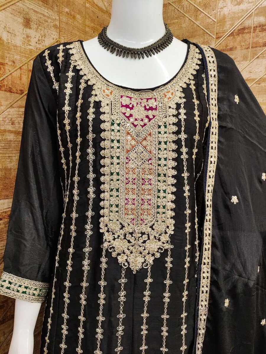 DESIGNER CHINON SEQUENCE & CODING EMBROIDERY WORK TOP BOTTOM WITH DUPATTA BLACK