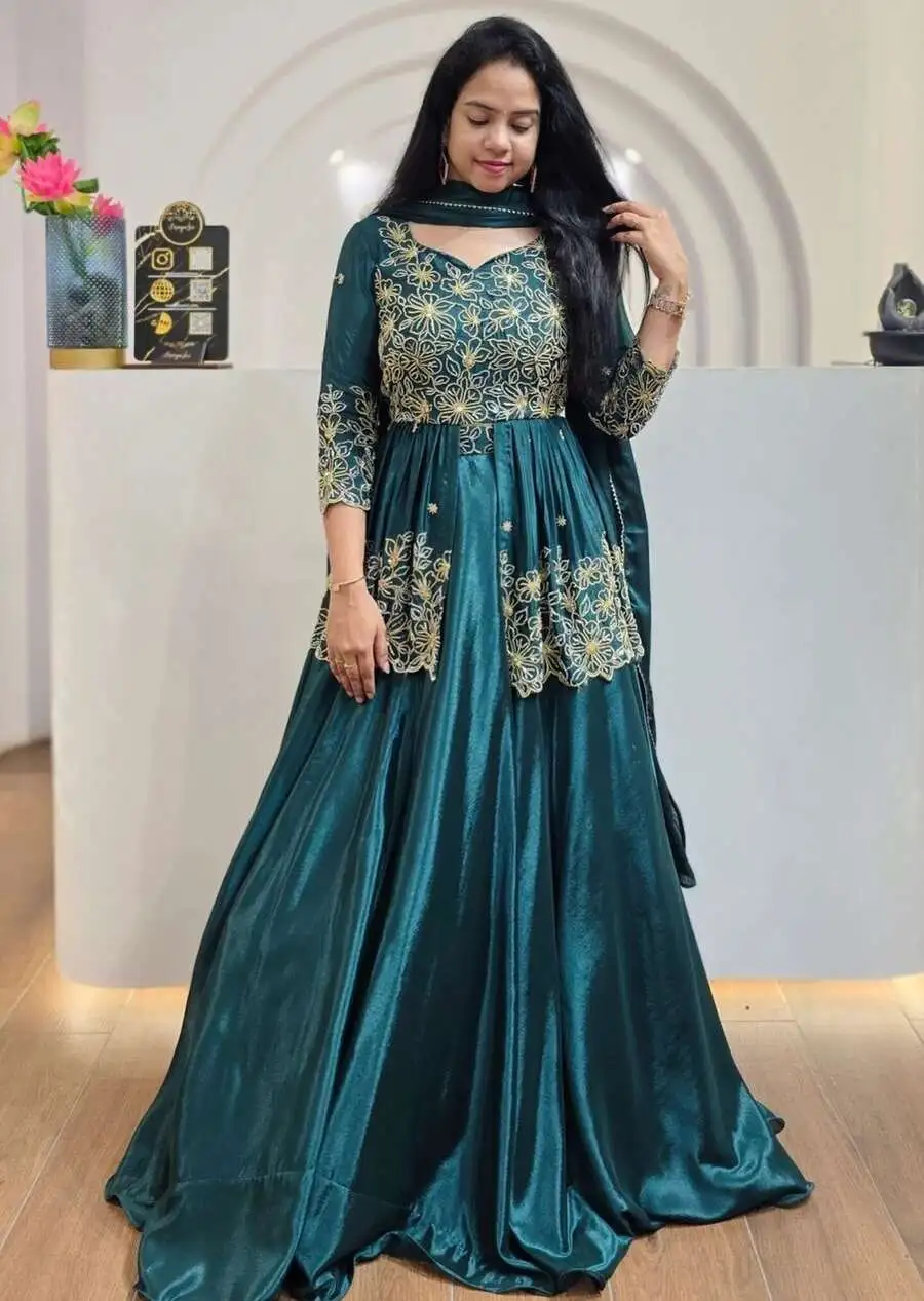 DESIGNER CHINON SEQUENCE EMBROIDERY WORK LEHENGA CHOLI WITH DUPATTA MORPICH