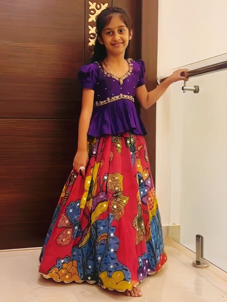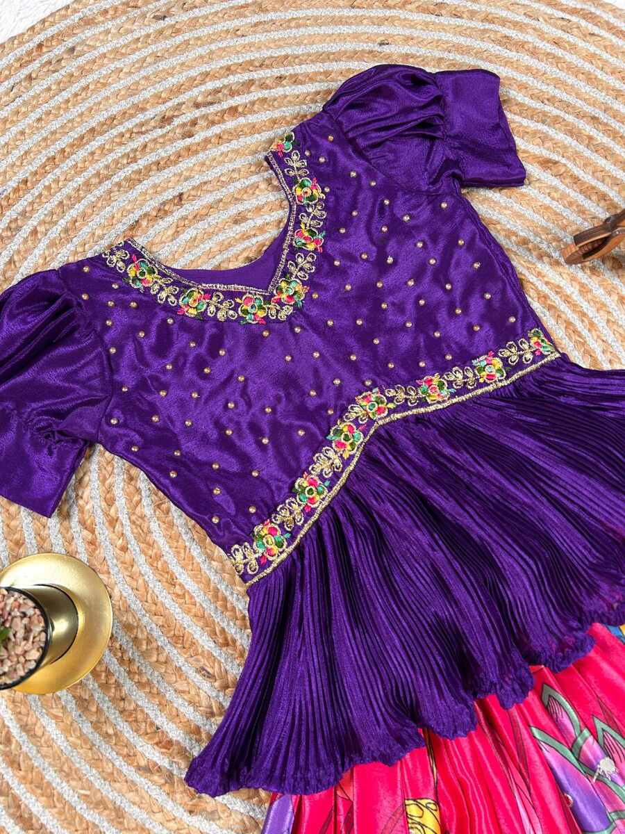 DESIGNER CHINON SILK EMBROIDERY & HAND WORK KID’S TOP LEHENGA RED AND PURPLE