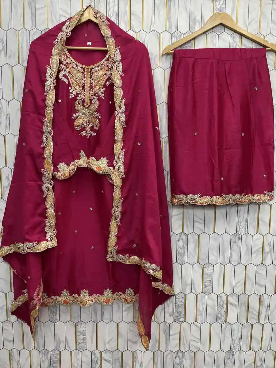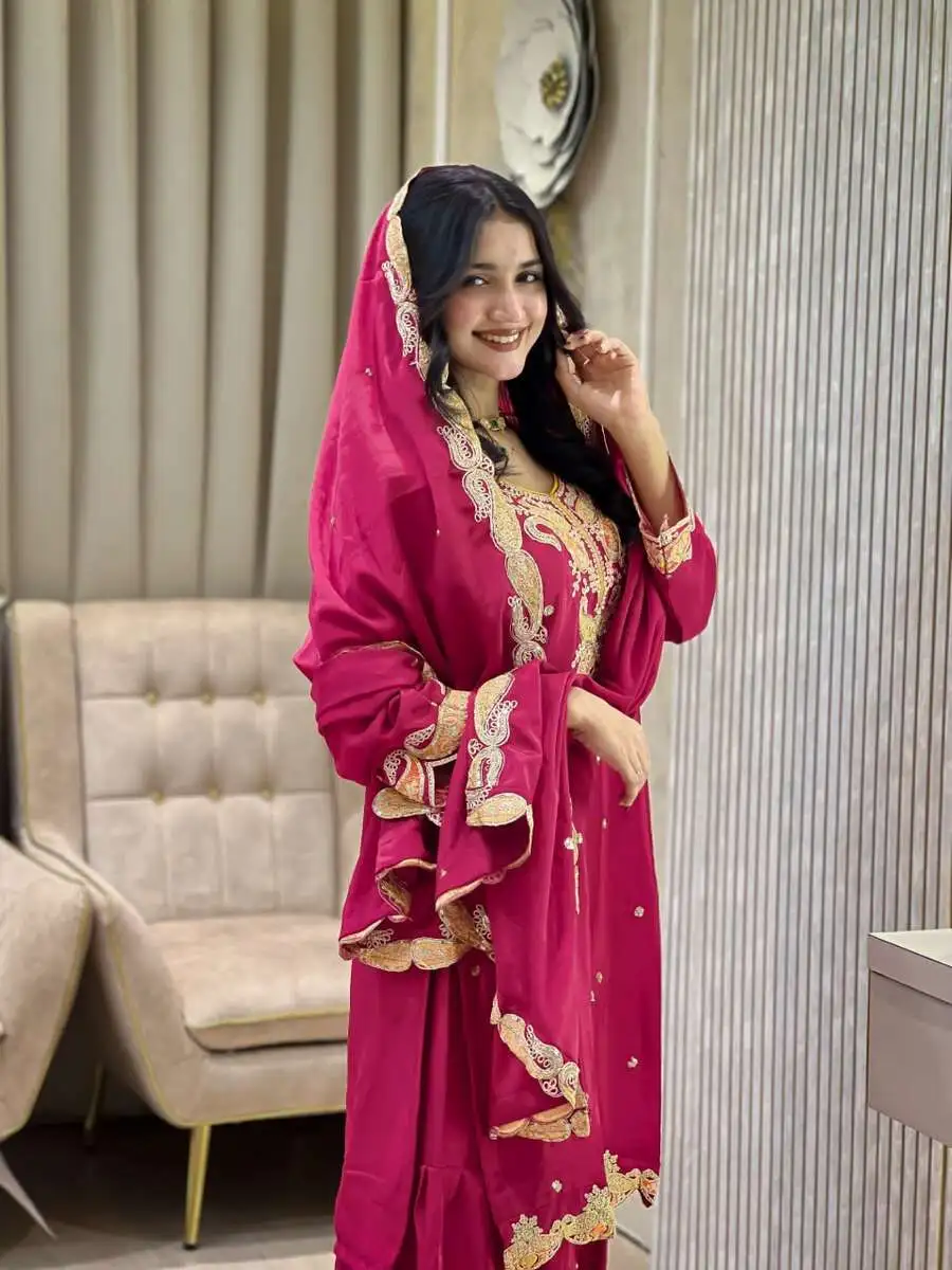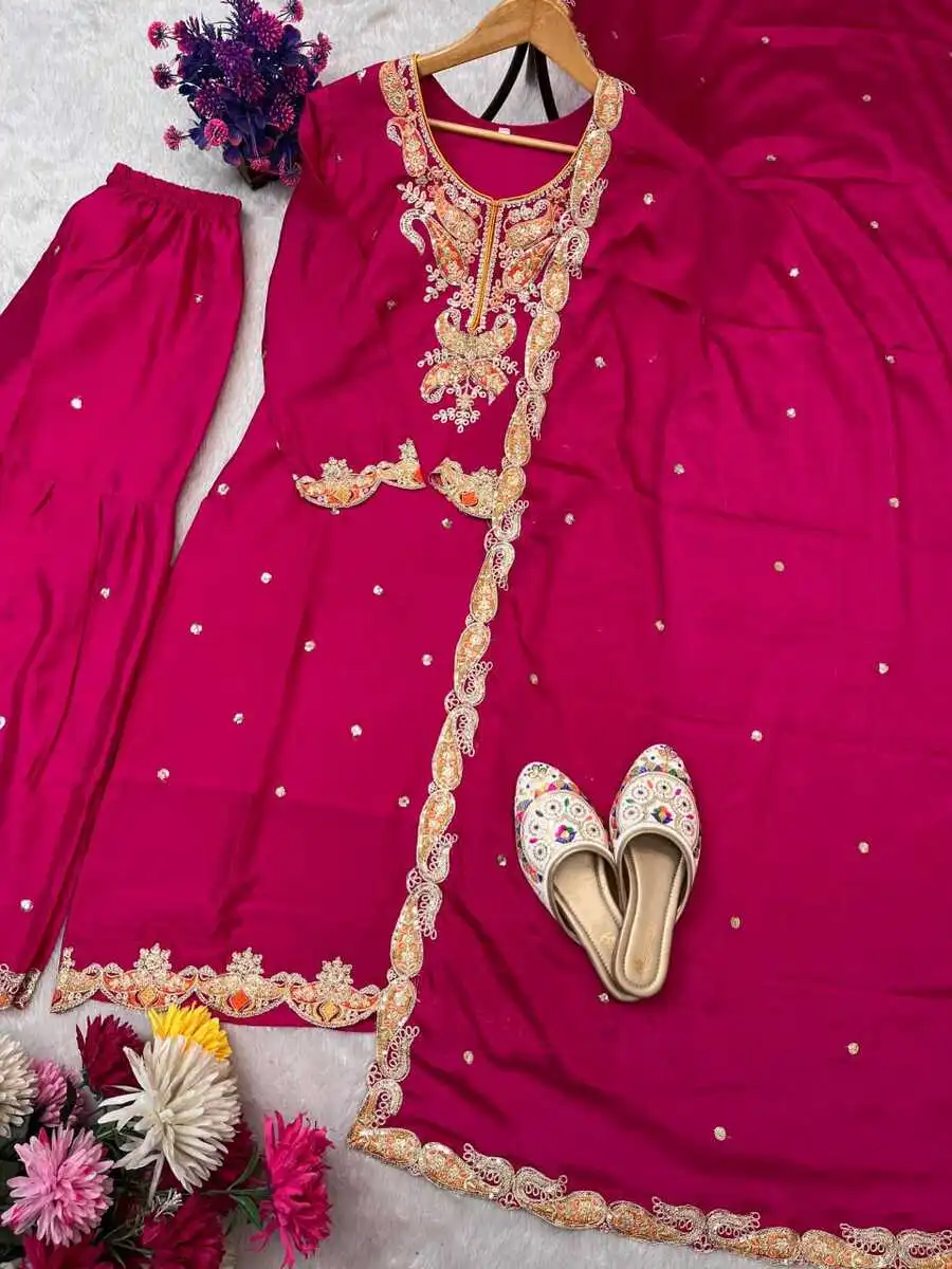 DESIGNER CHINON SILK EMBROIDERY SEQUENCE WORK TOP PALAZZO WITH DUPATTA RANI