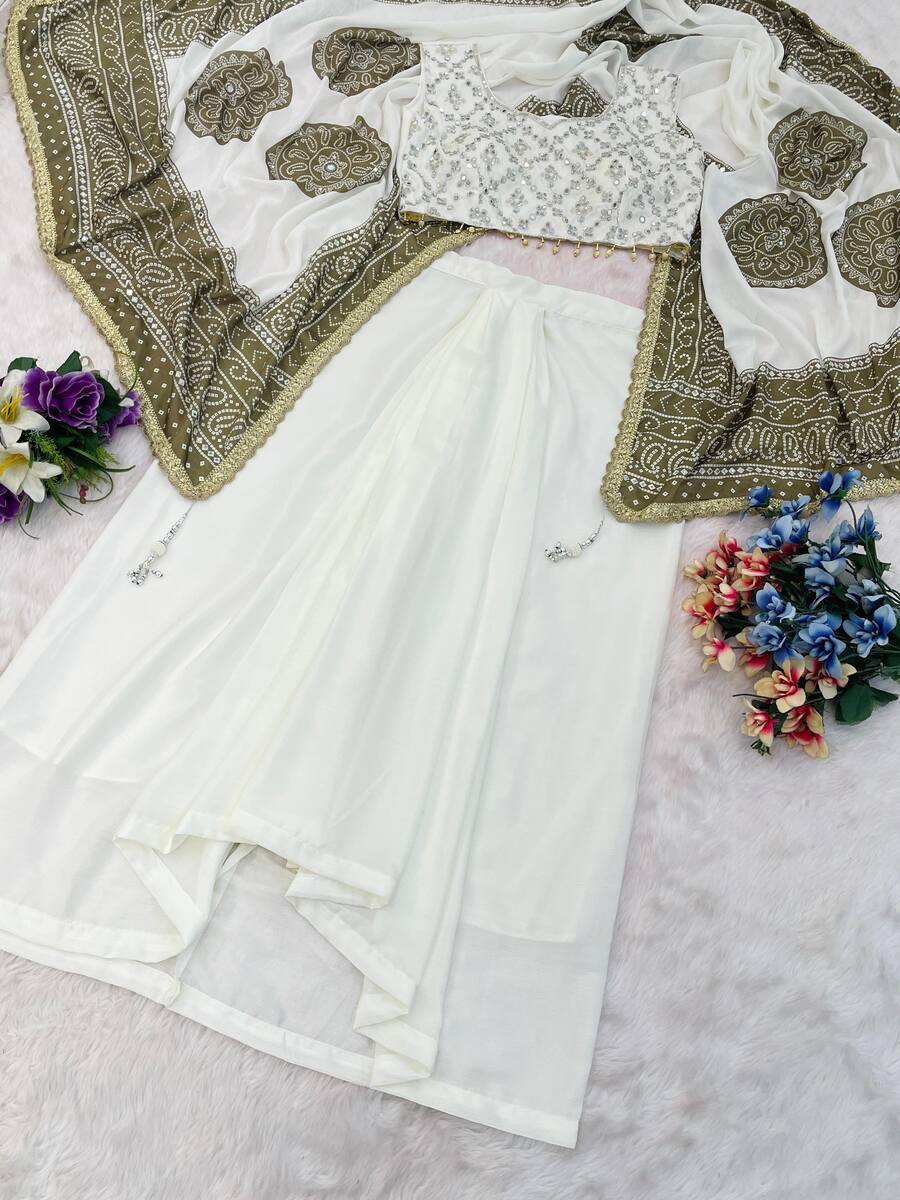 DESIGNER CHINON SILK EMBROIDERY WITH REAL MIRROR WORK DRAPE SKIRT BLOUSE WITH DUPATTA WHITE