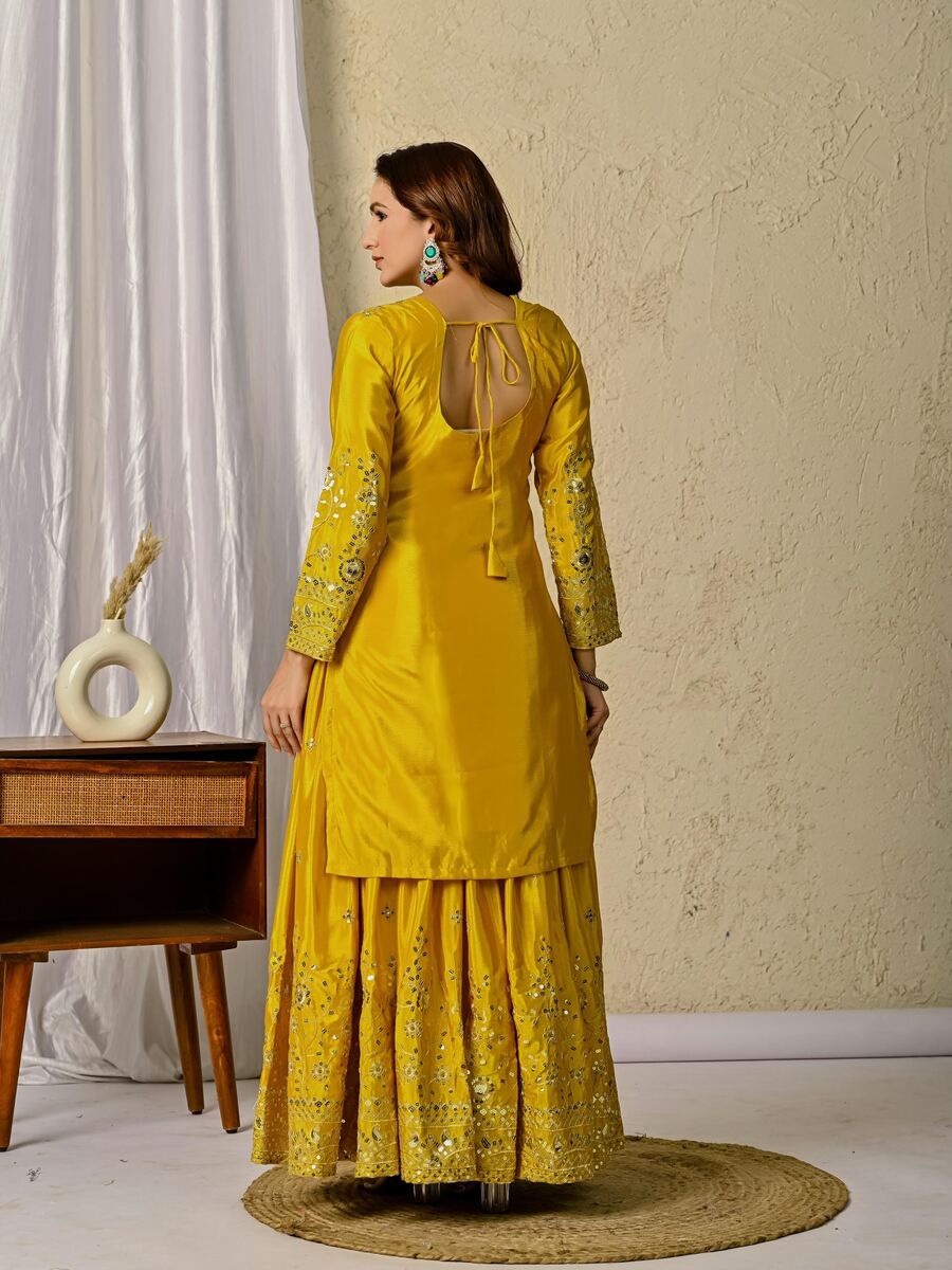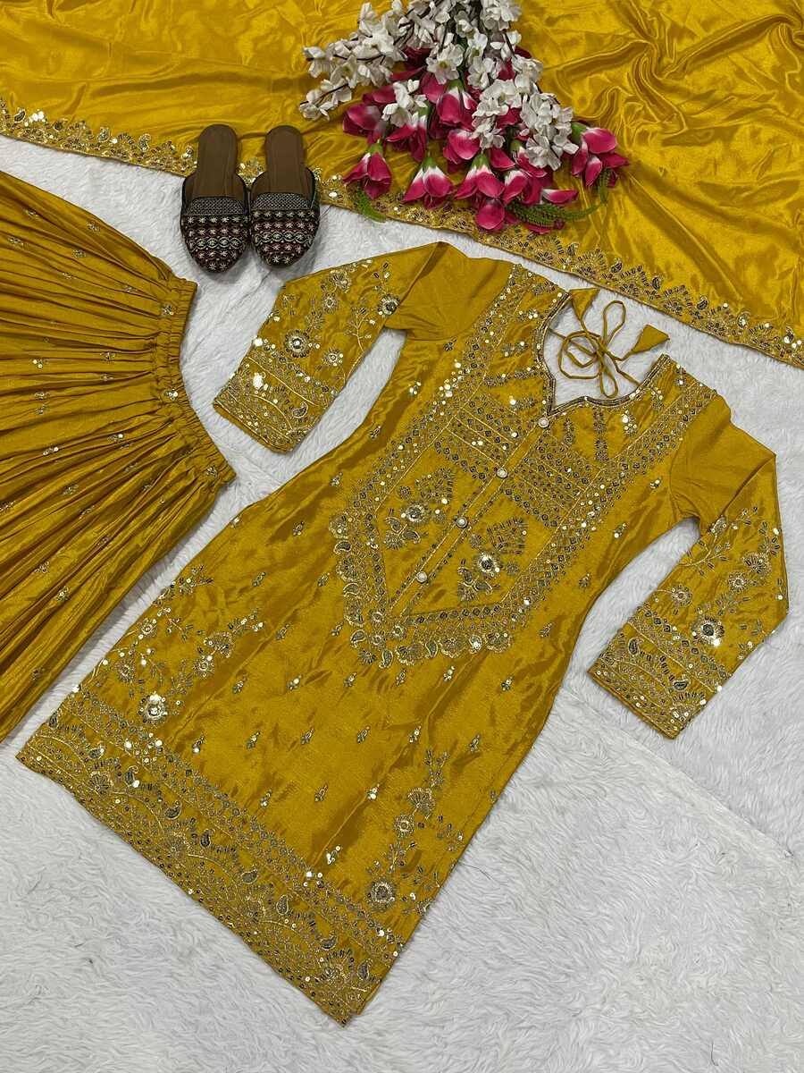 DESIGNER CHINON SILK SEQUENCE EMBROIDERY WORK TOP PALAZZO WITH DUPATTA YELLOW