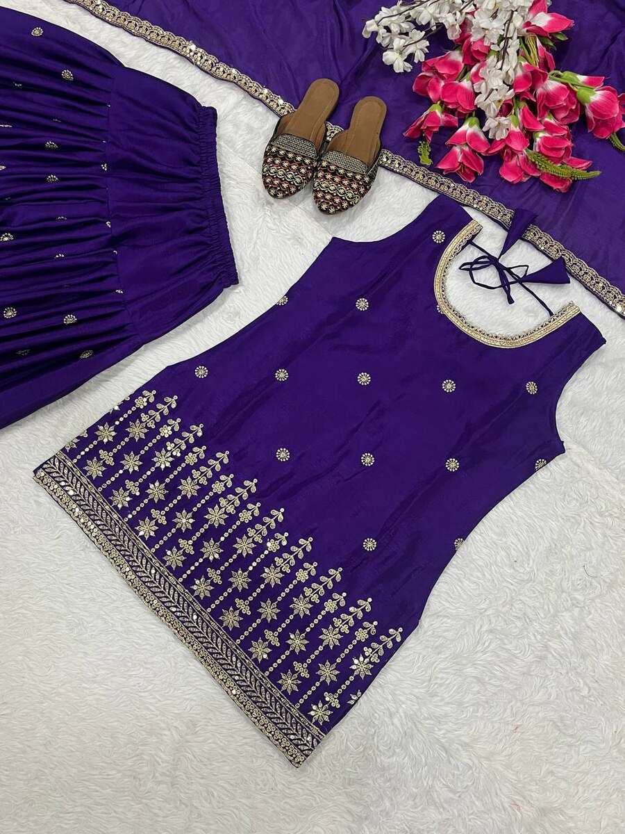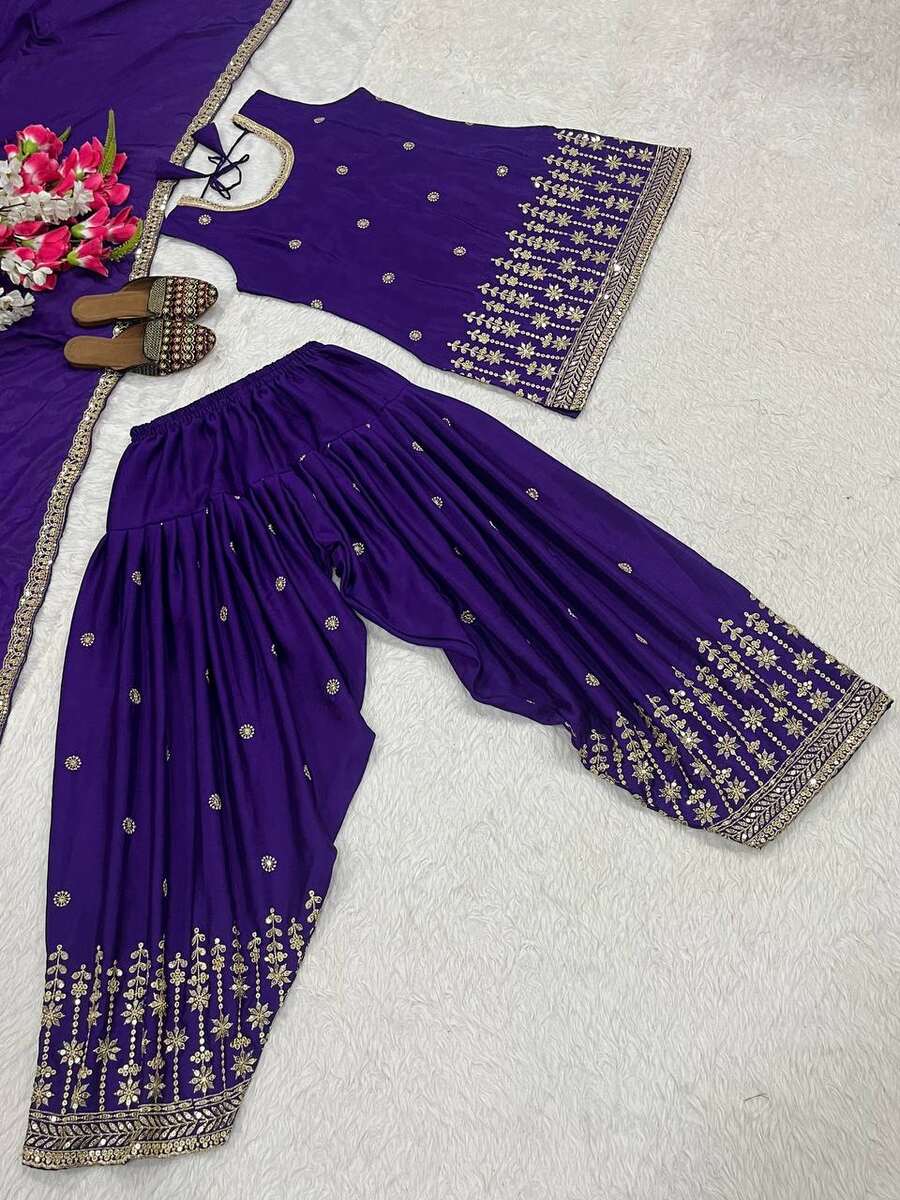 DESIGNER CHINON SILK SEQUENCE EMBROIDERY WORK TOP PATIYALA WITH DUPATTA PURPLE