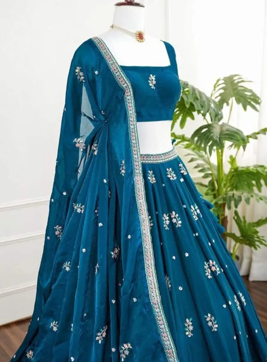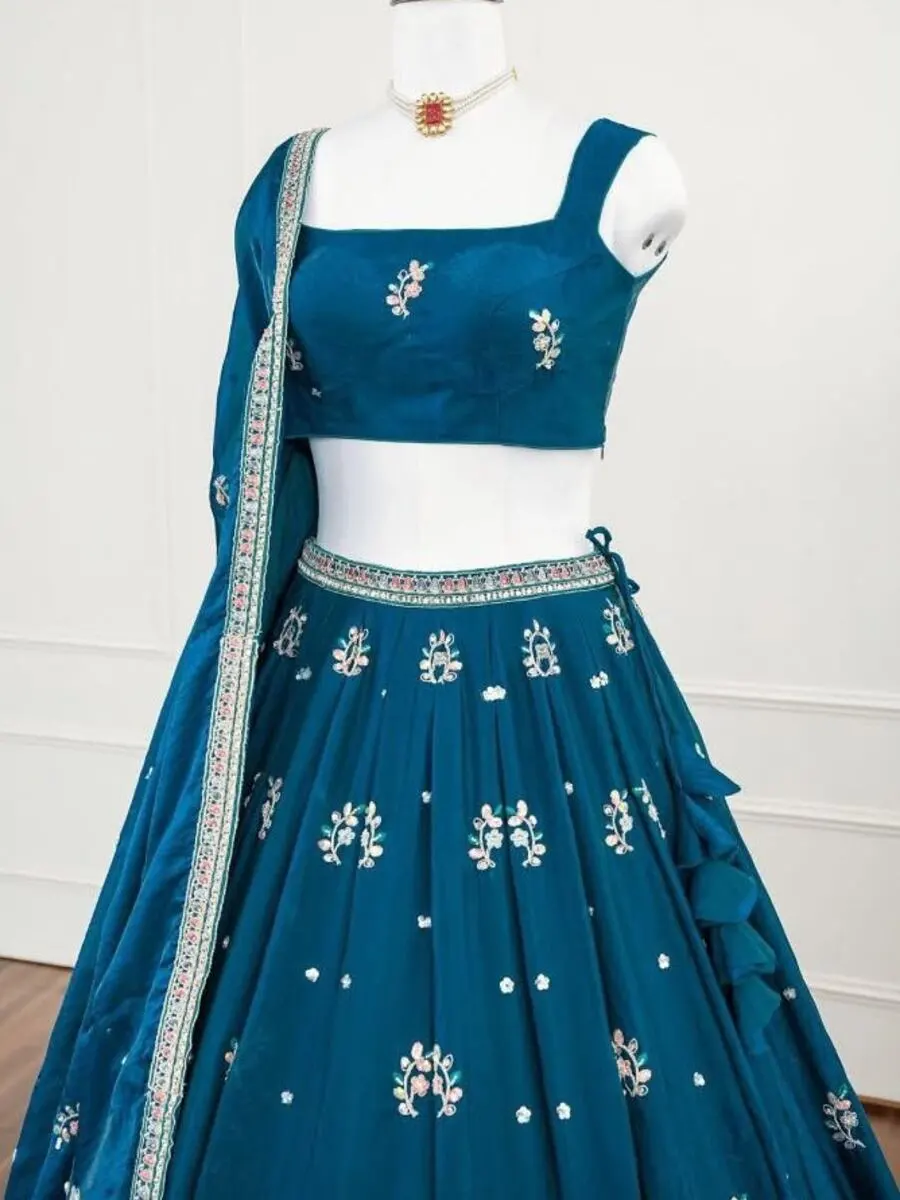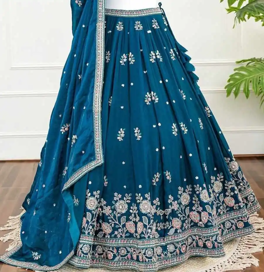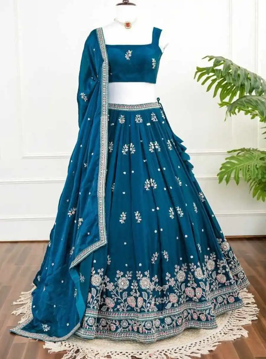 DESIGNER CHINON SILK THREAD & SEQUENCE WORK LEHENGA CHOLI WITH DUPATTA TEAL
