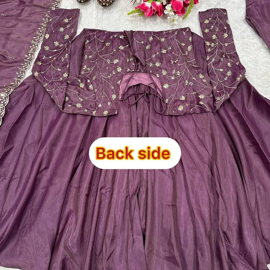 DESIGNER COSMOS SILK EMBROIDERY SEQUENCE WORK GOWN BOTTOM WITH DUPATTA PURPLE