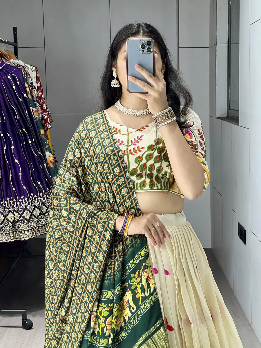 DESIGNER COTTON EMBROIDERY WORK LEHENGA CHOLI WITH DUPATTA GREEN