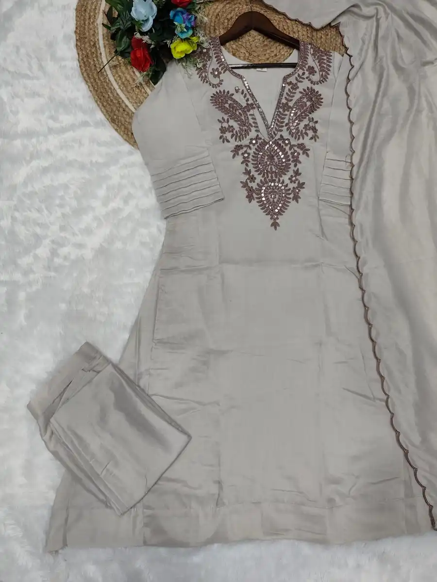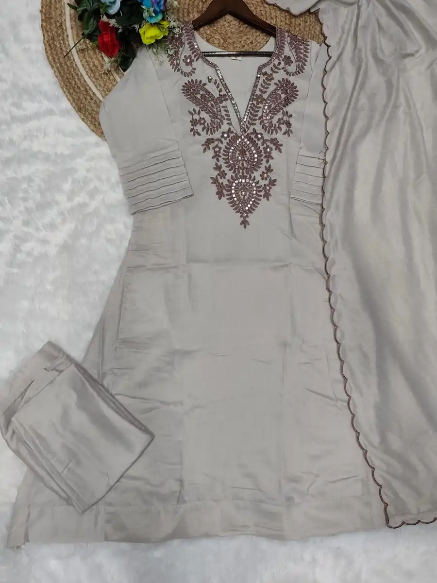 DESIGNER COTTON EMBROIDERY WORK TOP BOTTOM WITH DUPATTA GREY