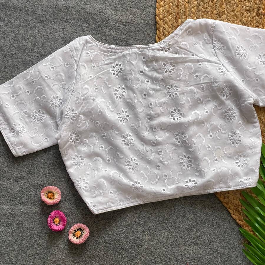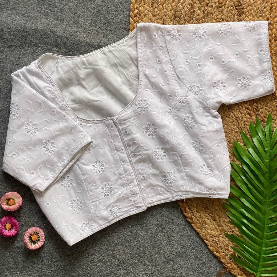 DESIGNER COTTON HAKOBA THREAD WORK STITCHED BLOUSE WHITE