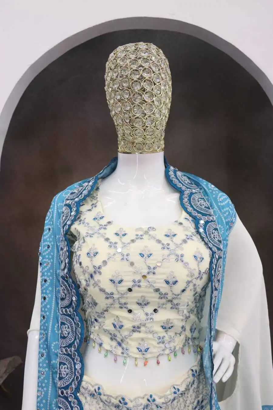 WORK : – BANDHANI PRINT WITH REAL MIRROR & EMBROIDERY LACE WORK