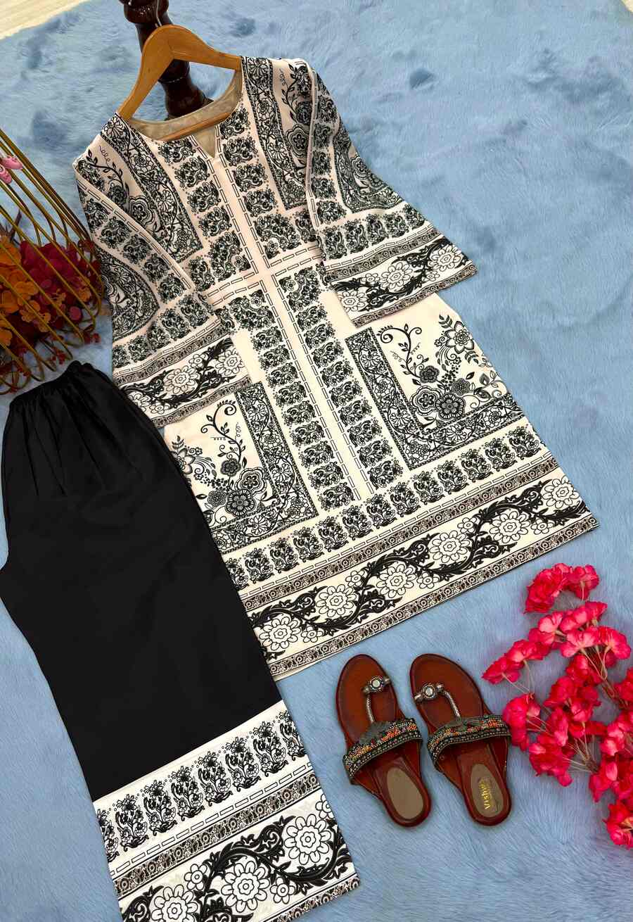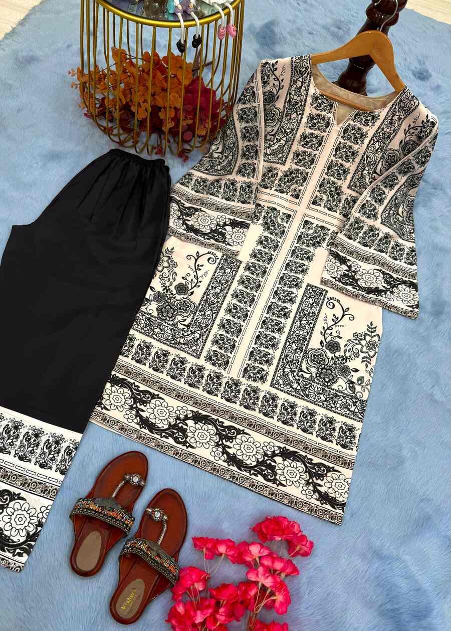 DESIGNER CREPE DIGITAL PRINTED WORK CO-ORD SET CREAM