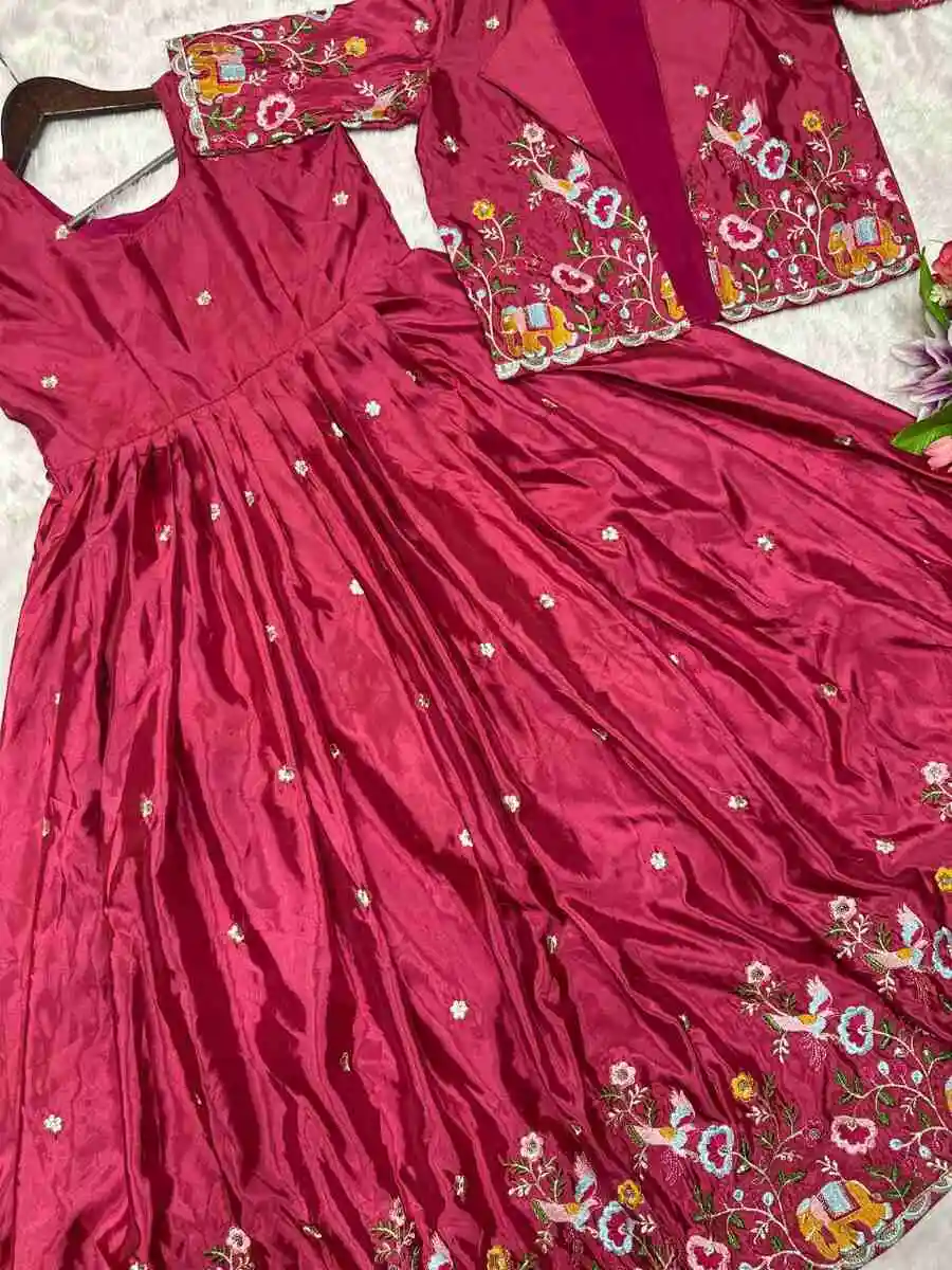 DESIGNER CREPE EMBROIDERY SEQUENCE WORK GOWN WITH KOTI PINK