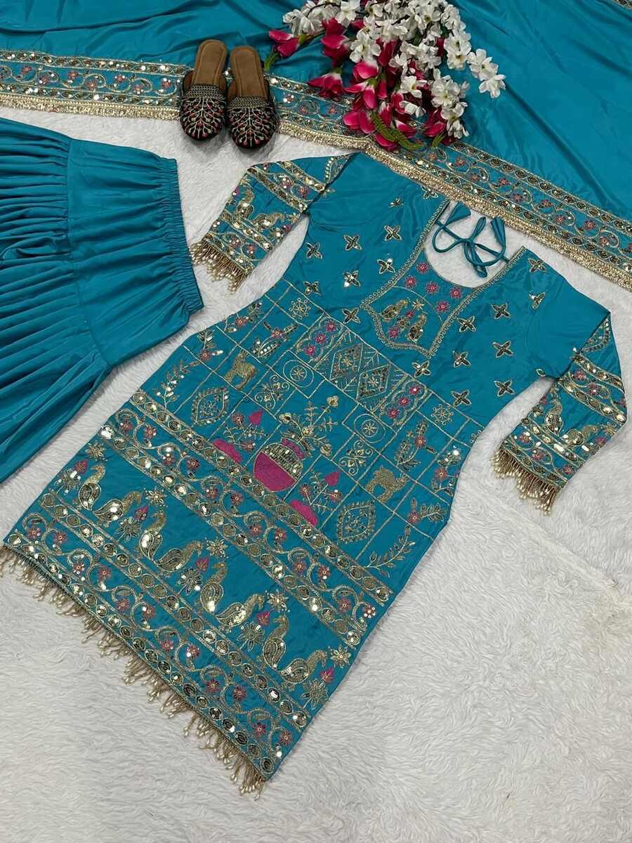 DESIGNER CREPE EMBROIDERY SEQUENCE WORK TOP PATIYALA WITH DUPATTA SKY