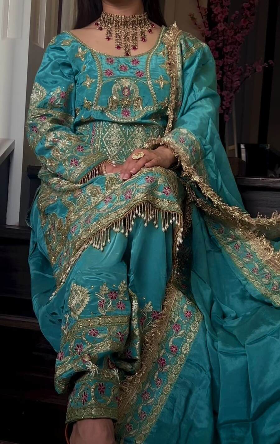 WORK : BEADS HAND WORK WITH SEQUENCE MULTI NEEDLE EMBROIDERY WORK AND ZARI WORK WITH FULL SLEEVE