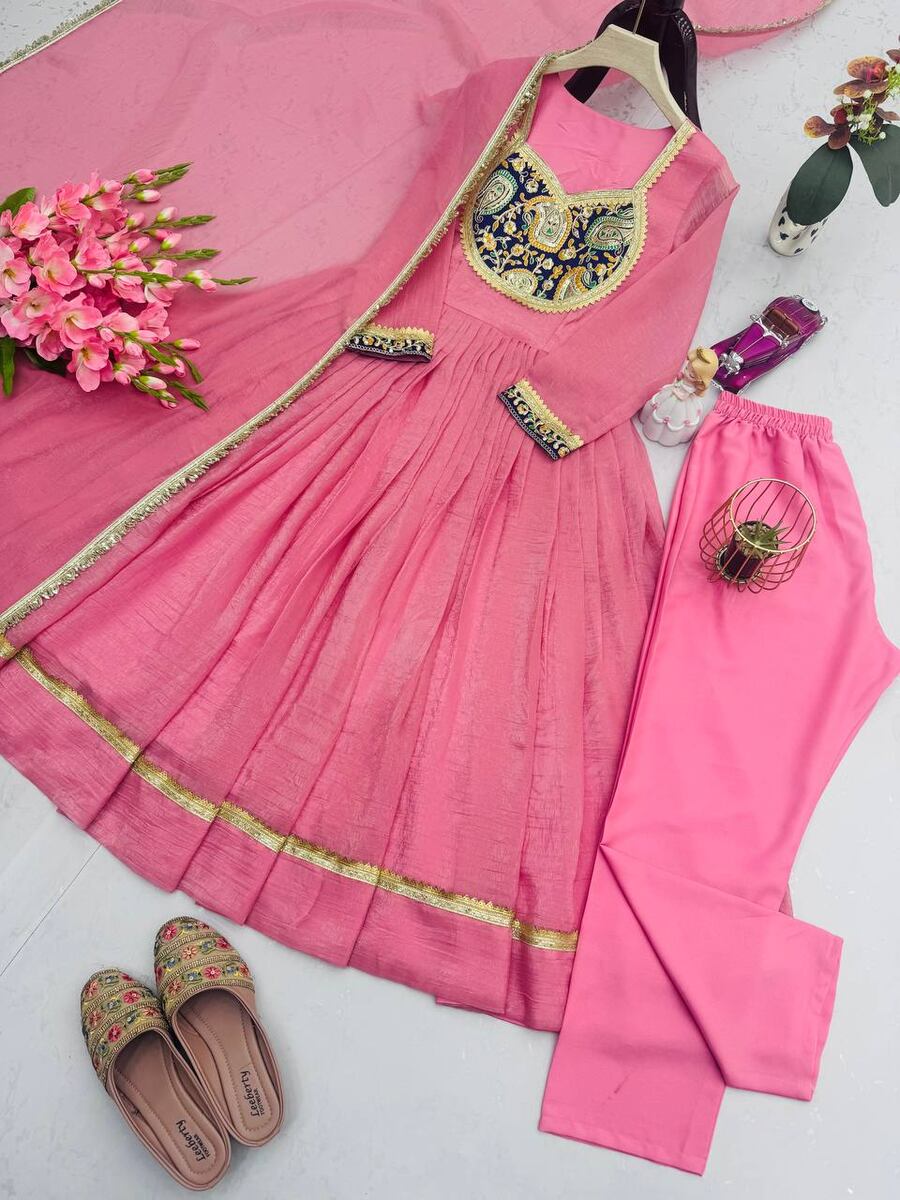 DESIGNER CRUNCHY SILK EMBROIDERY THREAD & SEQUENCE WORK GOWN BOTTOM WITH DUPATTA BABY PINK
