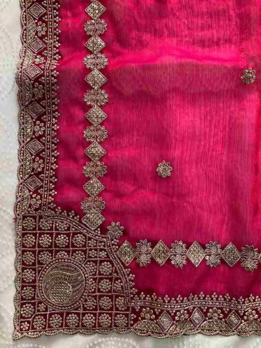 SAREE FABRIC : PREMIUM DIAMOND CHINON SILK WITH HEAVY EMBROIDERY CODING MULTI TREADS AND SEQUENCE WORK