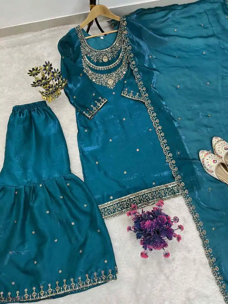 SHARARA : HEAVY CHINON SILK WITH SEQUENCE EMBROIDERY WORK