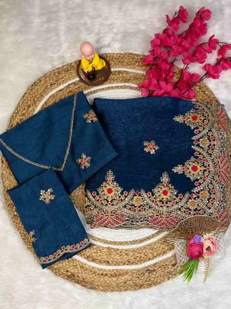 BLOUSE : PREMIUM DIAMOND CHINON SILK WITH HEAVY EMBROIDERY WORK UNSTITCHED BLOUSE