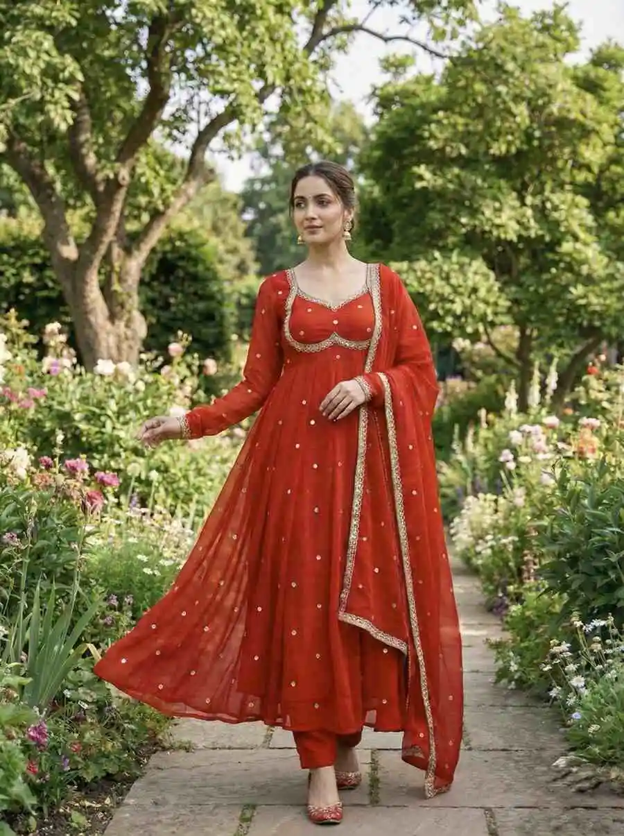 GOWN FABRIC : HEAVY FAUX GEORGETTE WITH HEAVY 5MM SEQUENCE EMBROIDERY WORK WITH SLEEVE WITH (ATTACHED PAID)