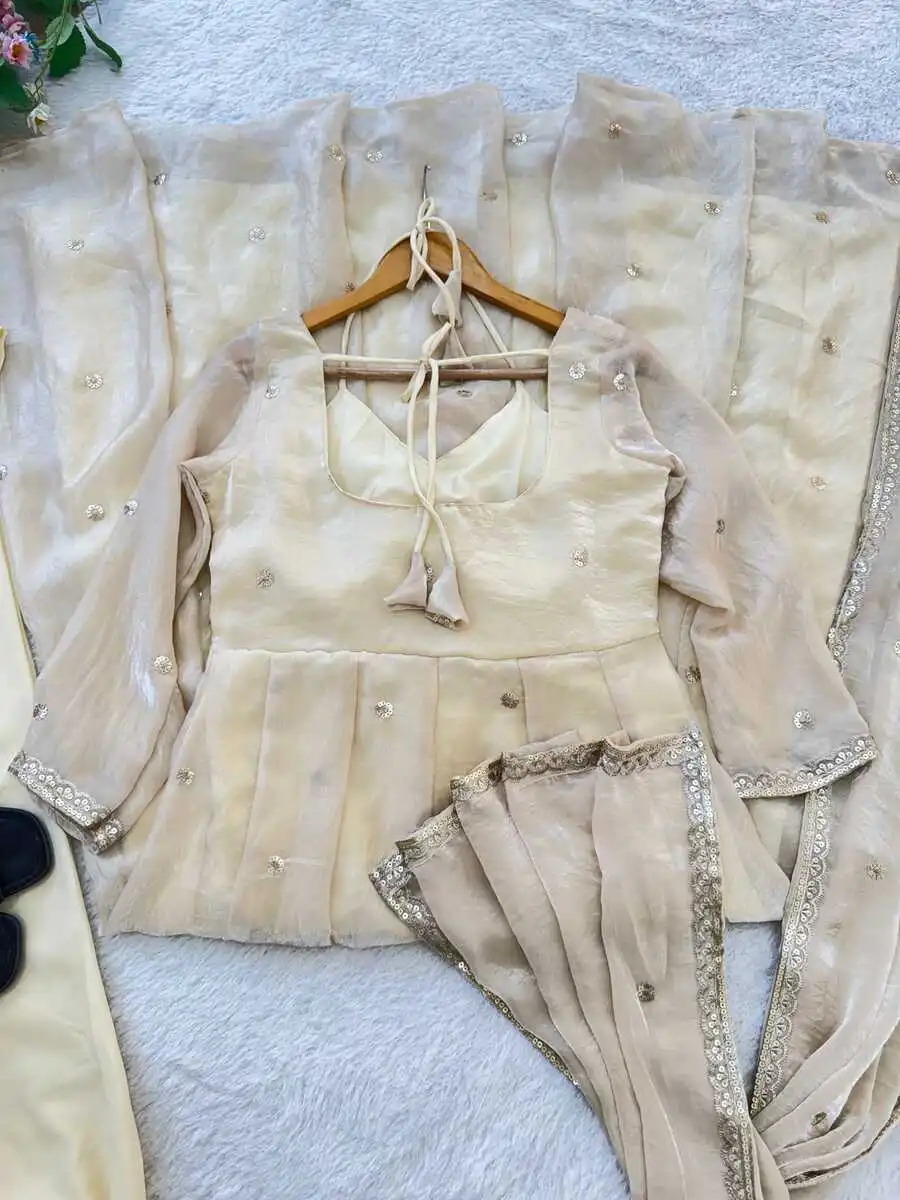 DESIGNER FENDY SATIN RAMBO SEQUENCE EMBROIDERY WORK GOWN BOTTOM WITH DUPATTA OFF WHITE