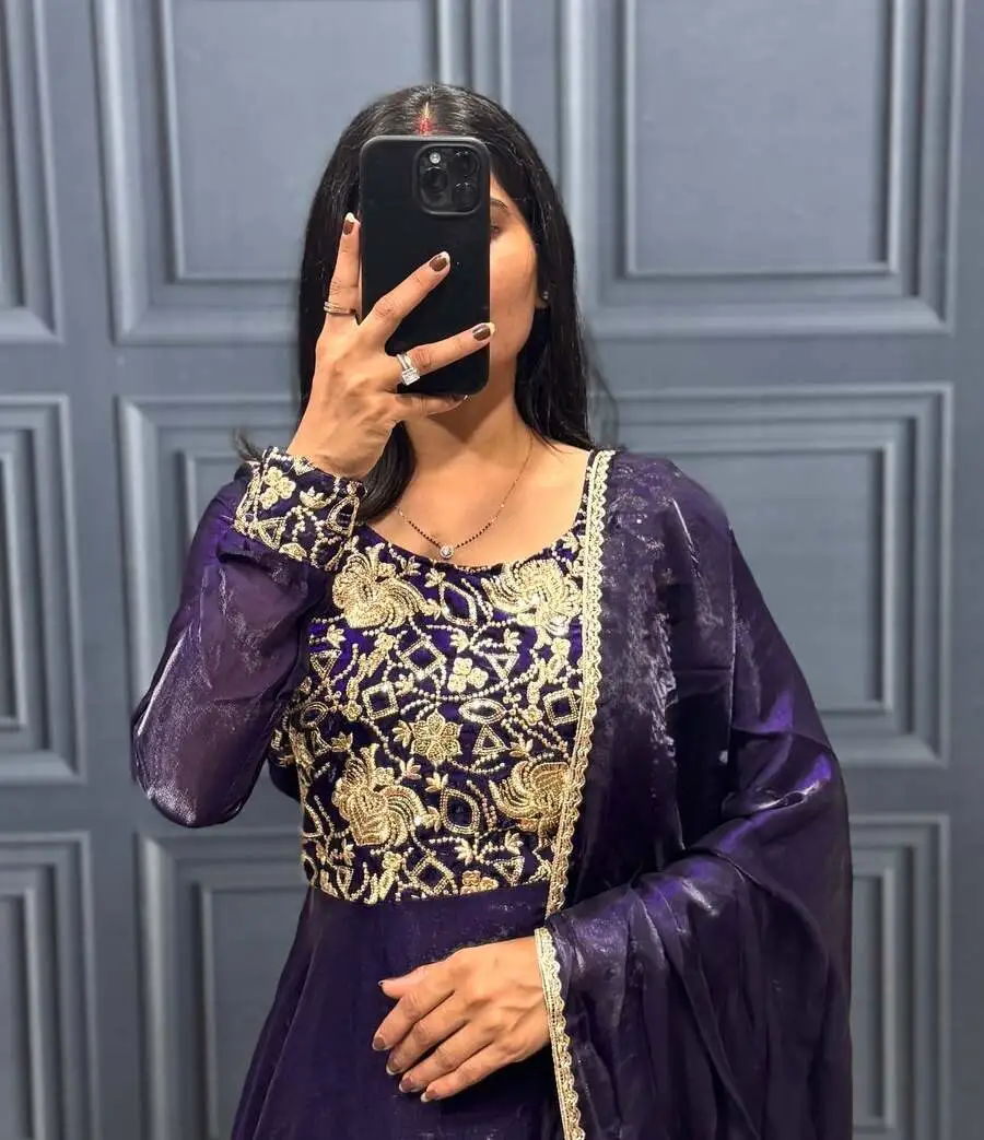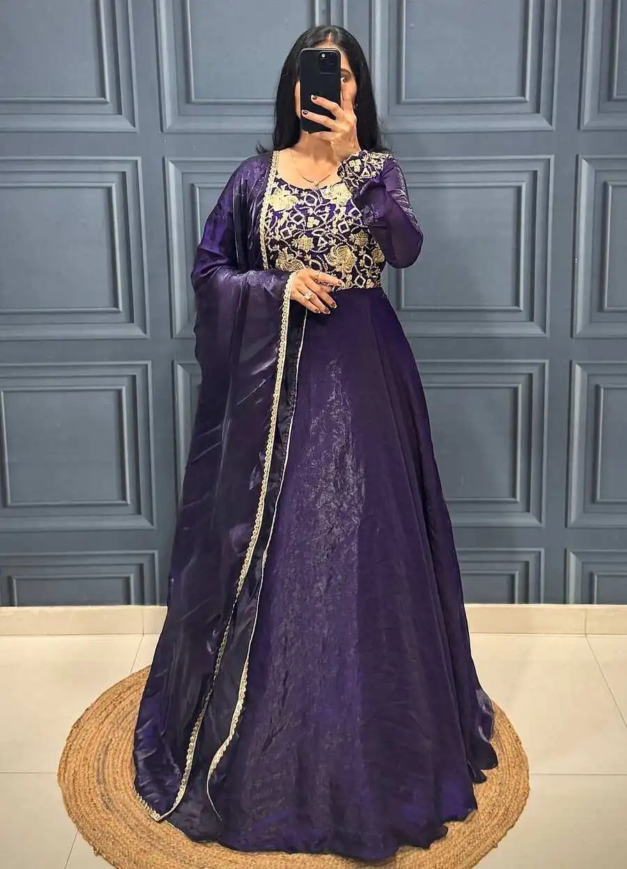 DESIGNER FENDY SILK EMBROIDERY SEQUENCE WORK GOWN WITH DUPATTA PURPLE