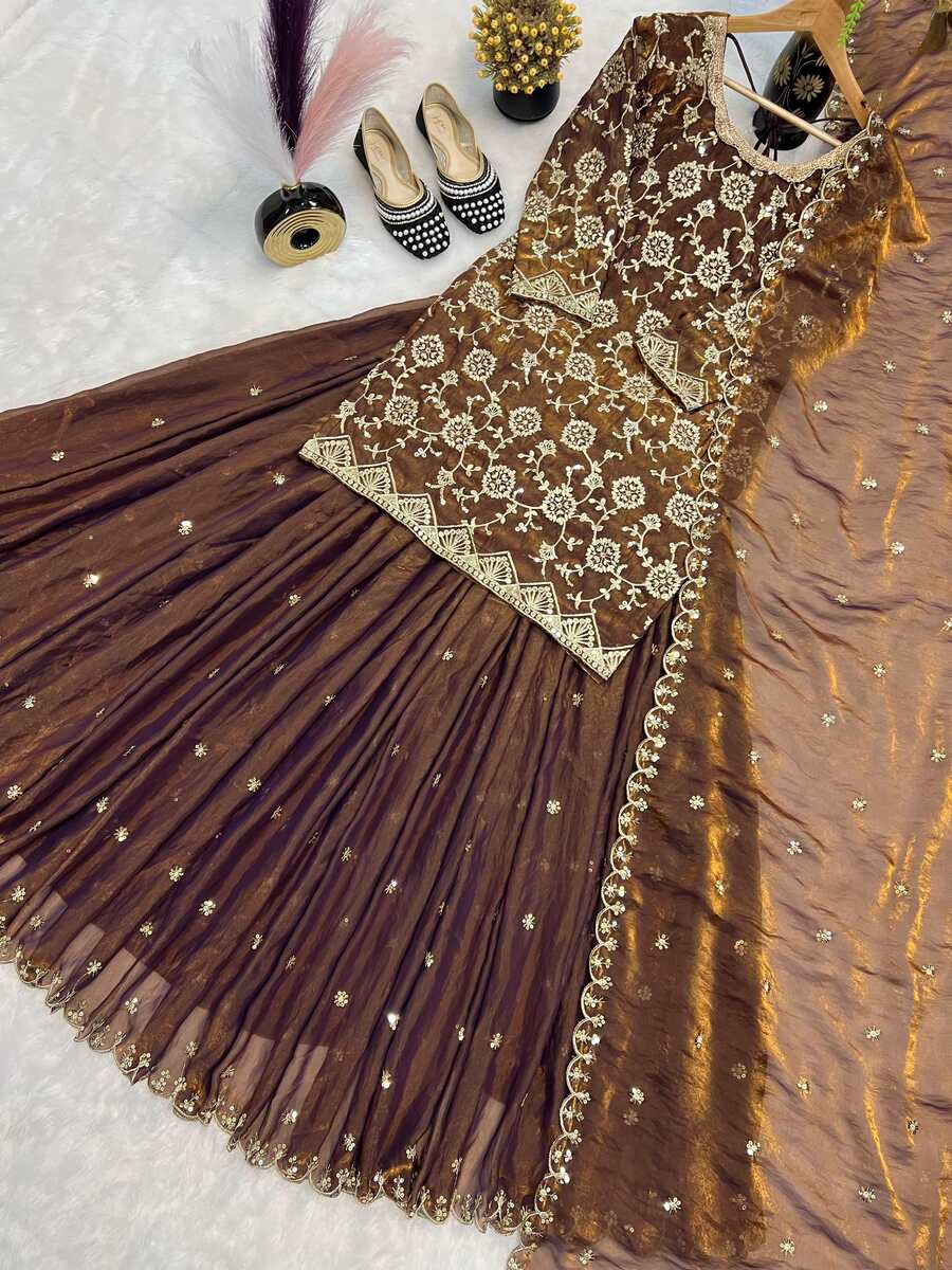 TOP FABRIC :- FAUX GEORGETTE WITH HEAVY 5MM EMBROIDERY SEQUENCE WORK WITH SLEEVE