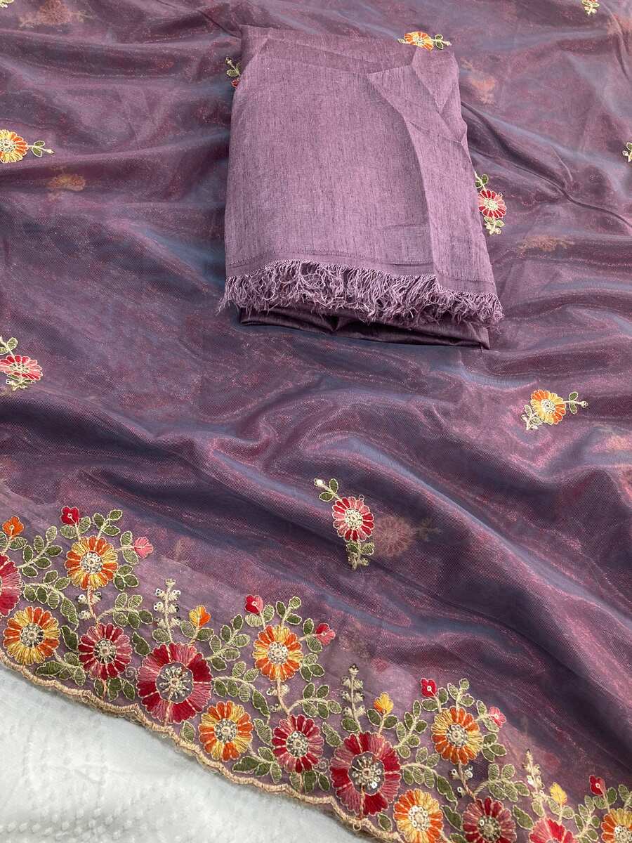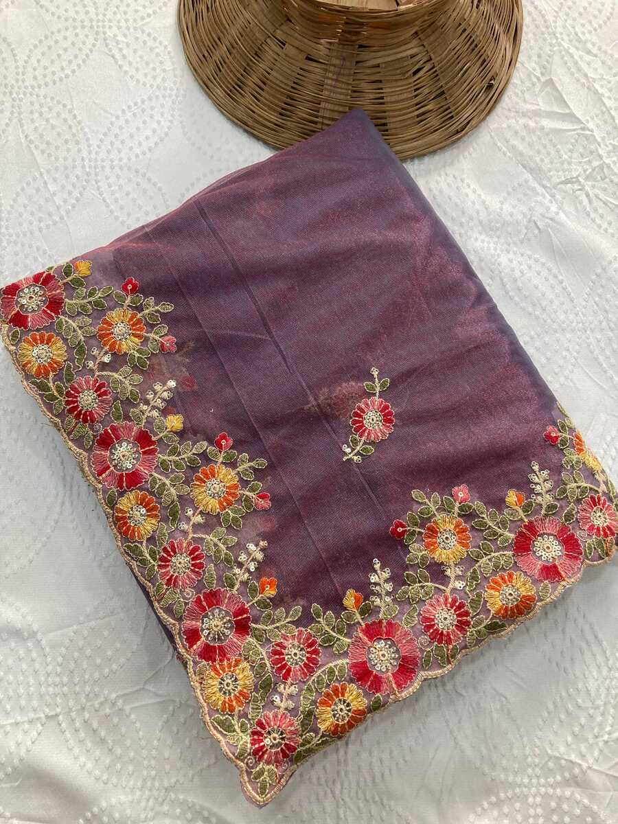 DESIGNER FENDY SOFT NET EMBROIDERY WITH CUTWORK SAREE WITH UNSTITCHED BLOUSE PURPLE